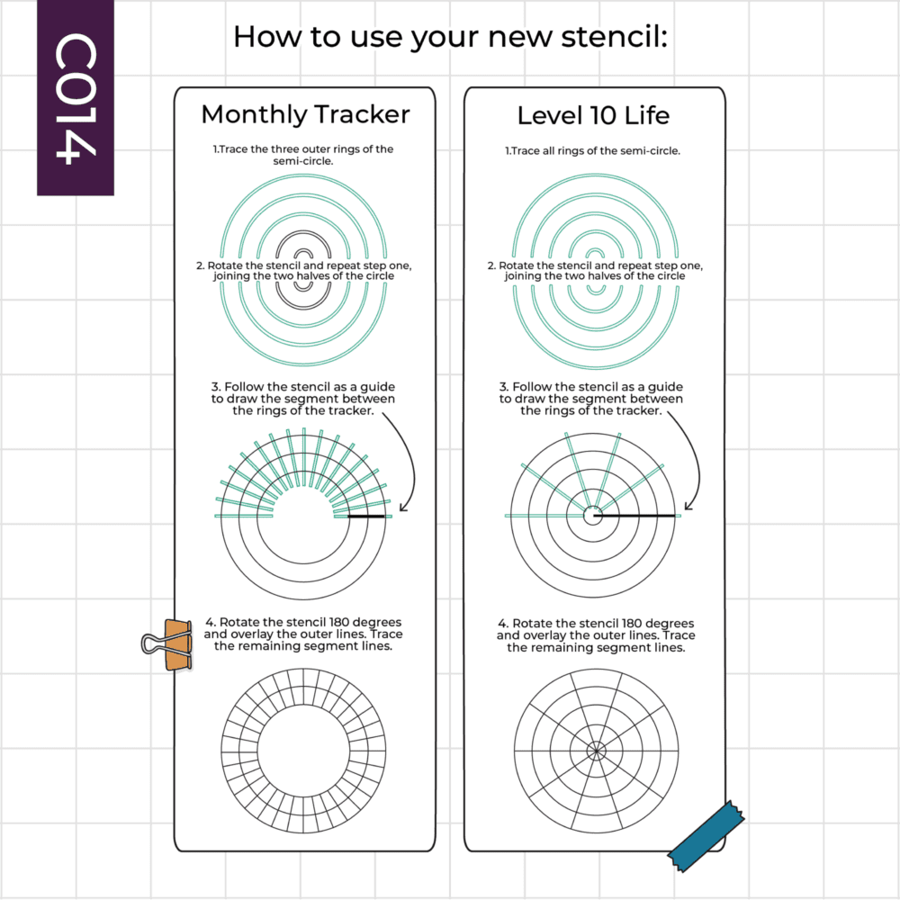 Use it to create a circular monthly spread/habit tracker, or a ‘Level 10 Life’ spread without any tricky geometry!