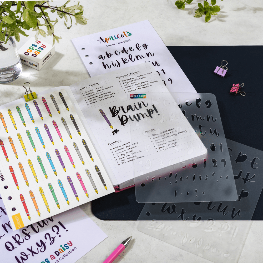 As our font stencils were so popular, we created a range of pocket stencils that can be used for commonly used journal headers.