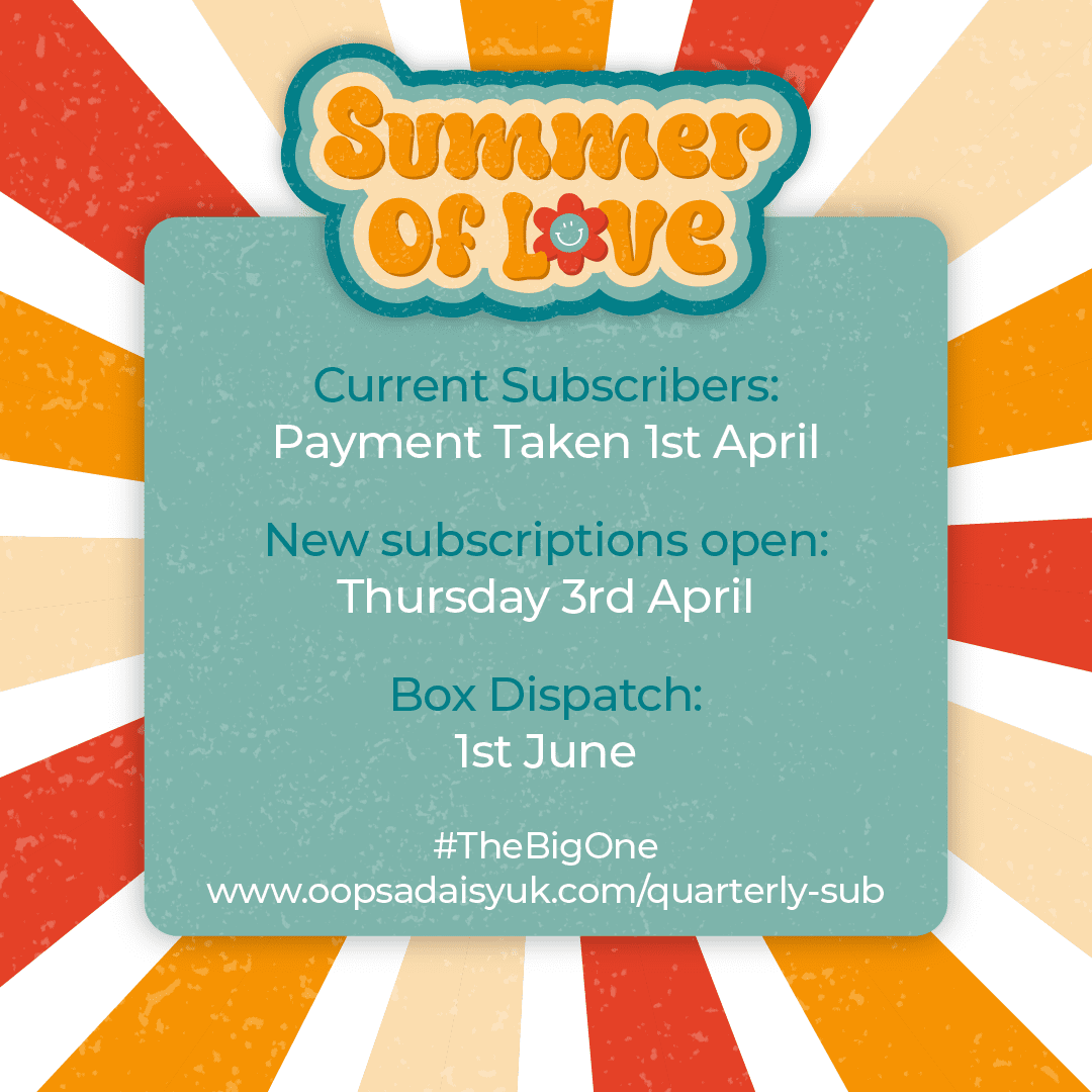 *Existing customers – please ensure your subscription is active PRIOR to 1st April if you wish to purchase this box. If your payment does not process as expected please send us an email at orders@oopsadaisyuk.com.
