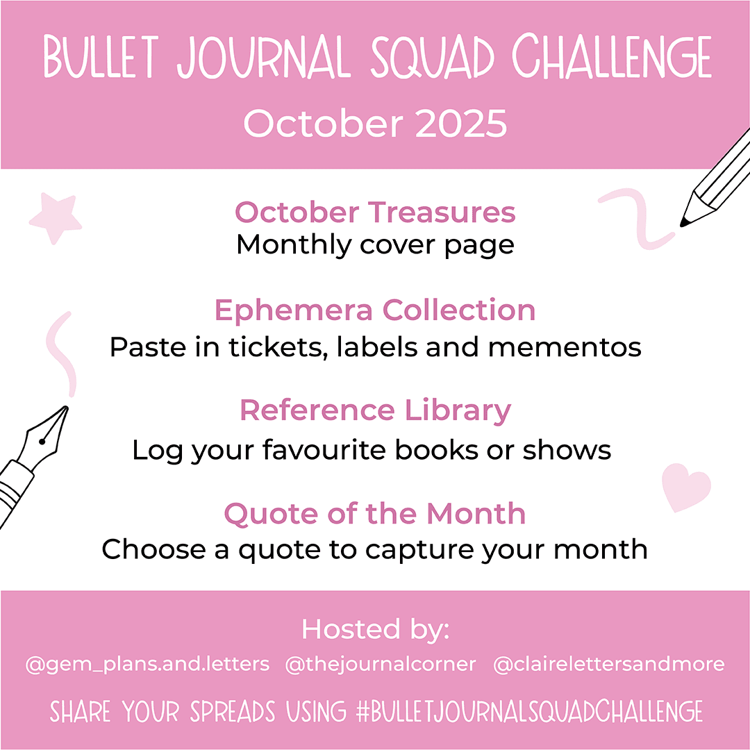 As well as here on the blog, the prompts will be shared in the Bullet Journal Squad Facebook group and via the social media channels of our brilliants hosts, the Oops a Daisy Creative Team!