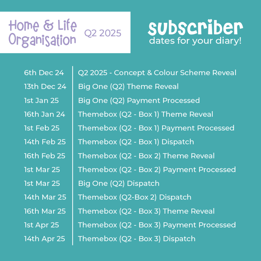 Our concept for the next season is “Home & Life Organisation”. This quarter we want you to sort out all of those little tasks that you never quite get around to doing… Things like sorting your finances, de-cluttering rooms, doing those annoying DIY jobs around the house, or maybe finally taking steps towards living a bit healthier.