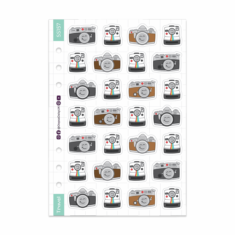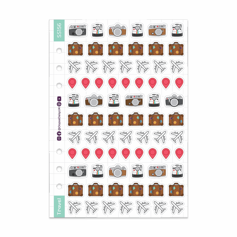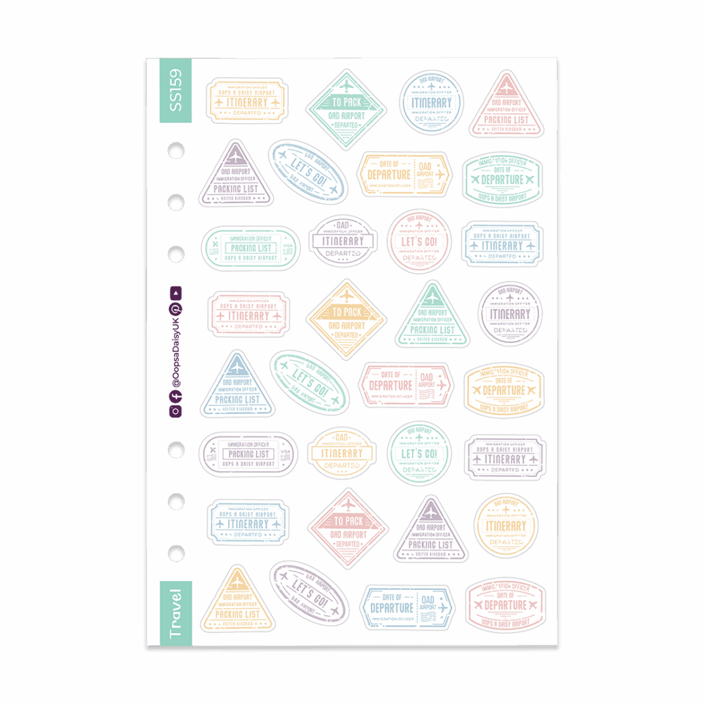 We have 5 decorative sticker sheets in this launch. All are printed on our standard matte material, except the passport stamps (SS159) which are on a clear matte material so can be layered on top of other decorations.