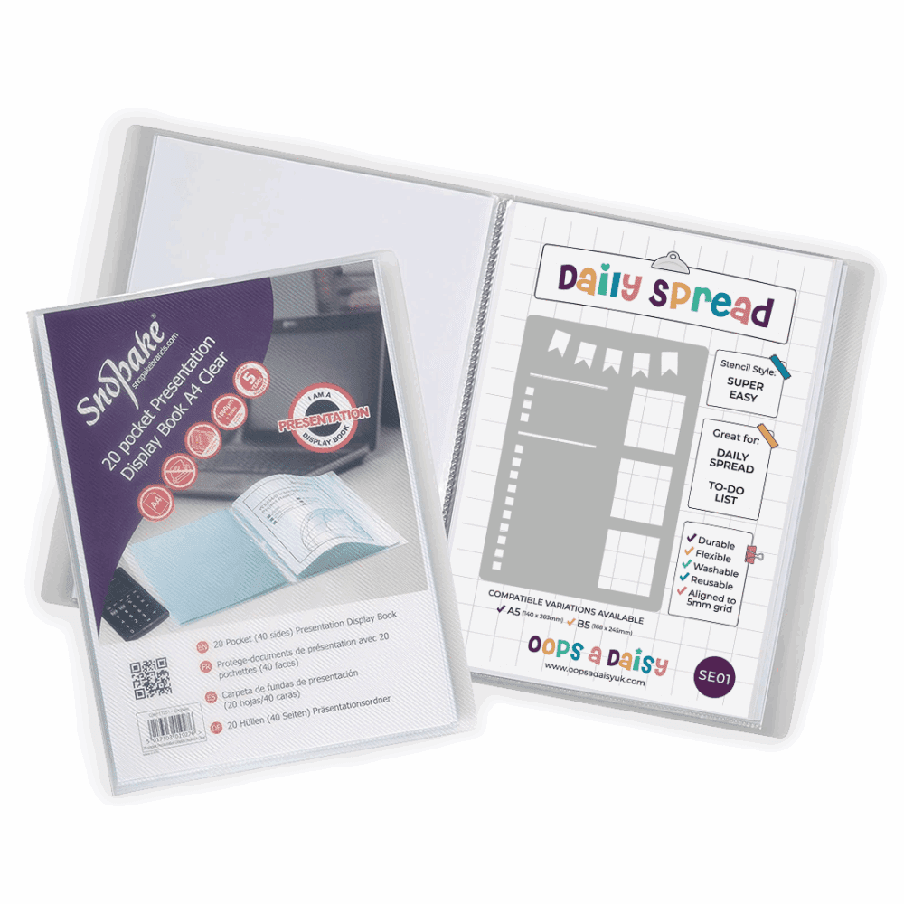 For our B5 Super Easy Stencils, you will need a slightly larger storage option… Our 20 pocket display book is perfect for this!