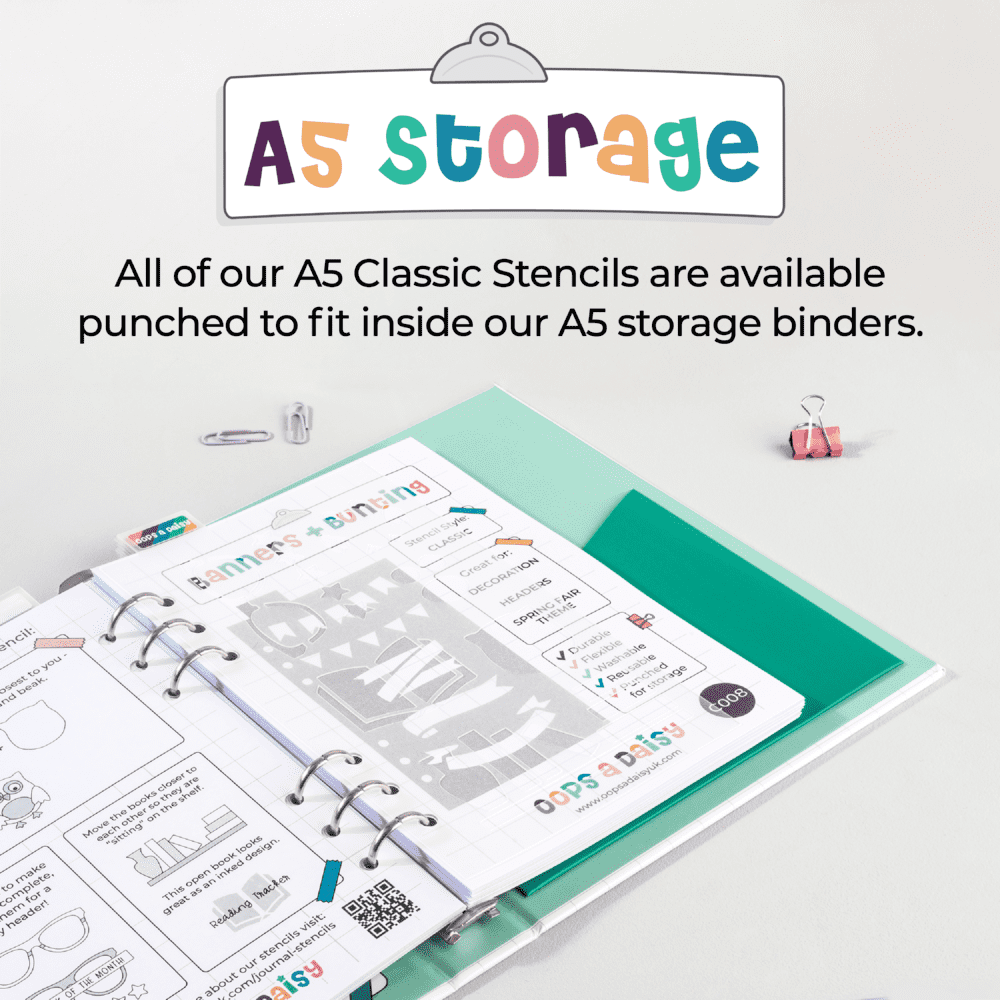 We know that we have a lot of customers who already have an extensive collection of Classic Stencils, so we have created this fab value storage bundle, which includes a binder, a set of cheat sheets and a sheet of stencil organisation stickers. All you need to do is add your stencils!