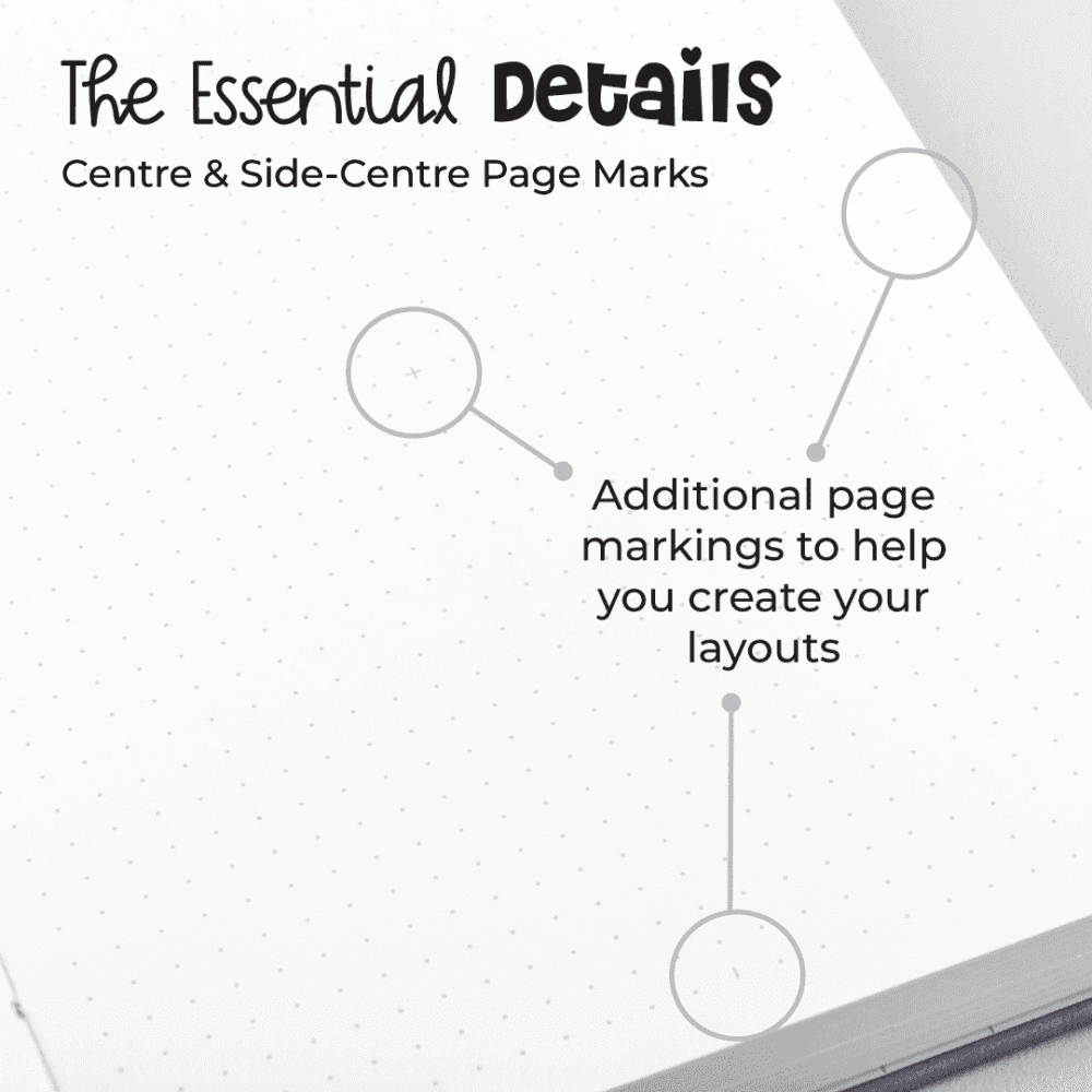 As with all our previous journals, we’ve also included marks at the centre and edges of each pages, so you can quickly divide your pages without counting dots.