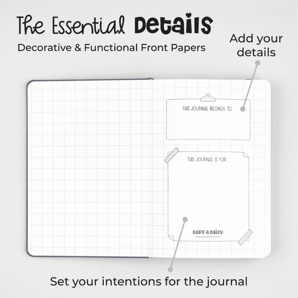 The front page of your new journal is a place to set your intentions for the book. Perhaps this notebook will be a place to record your self-care, to nudge your productivity, or maybe you are using it to record a hobby, such as reading or needlecraft.⁠