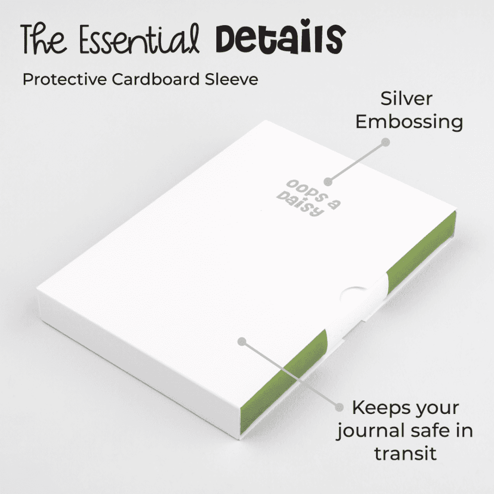 Embossed with a silver logo, the cardboard sleeve will ensure your journal stays safe in transit, or on your shelf.