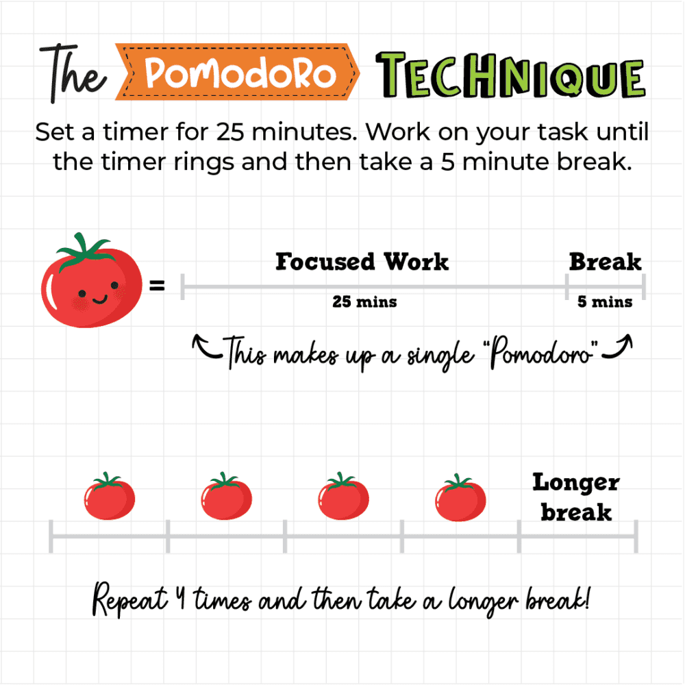 If you often find yourself distracted when attempting to get a task done, or are put off starting when you don’t have much time to spare, then the Pomodoro technique might be for you!