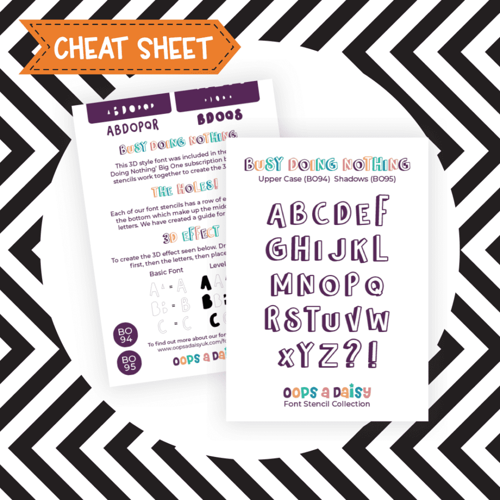 You’ll also find a brand new set of font stencils, along with a handy cheat sheet to show you how to put both elements together.