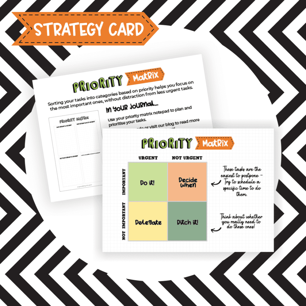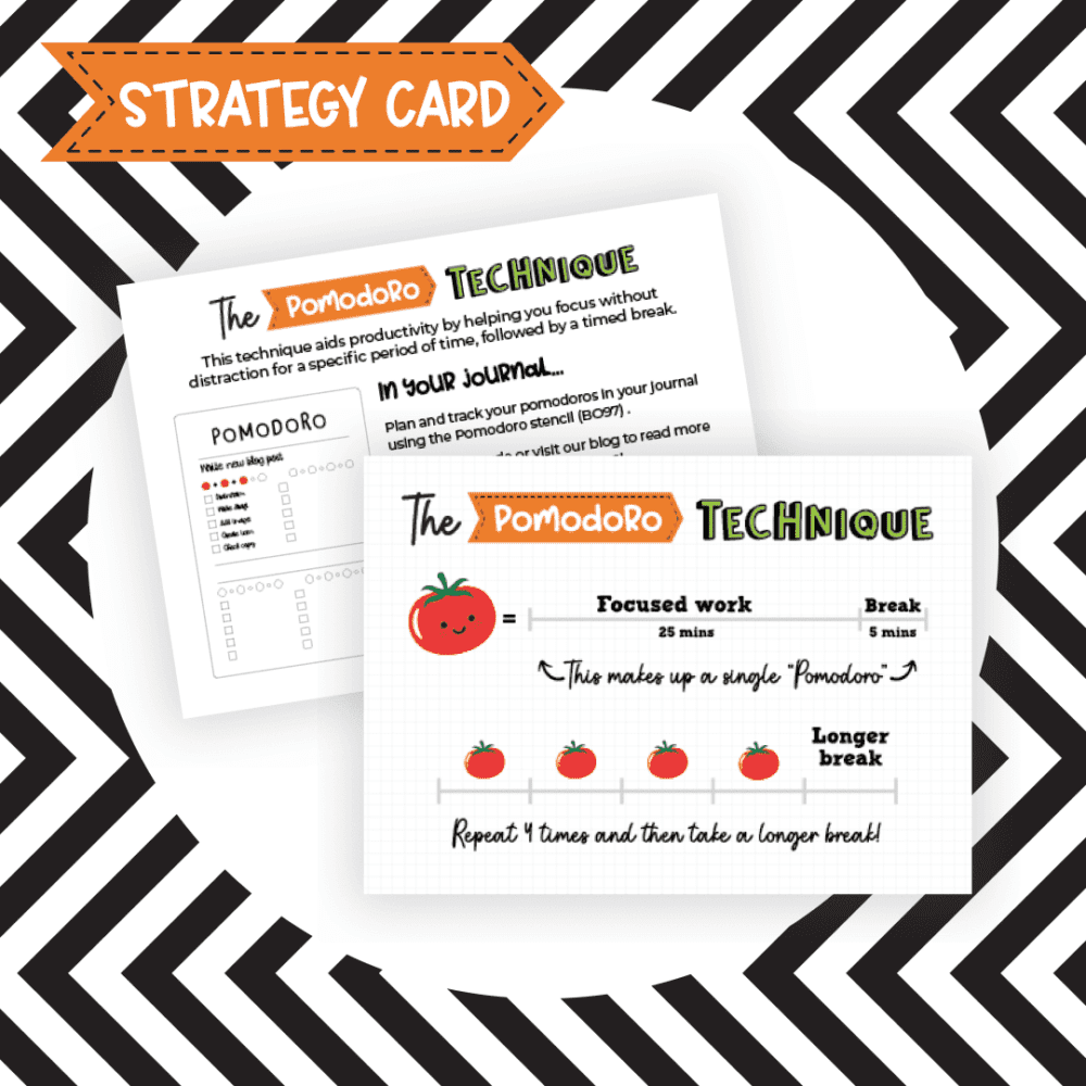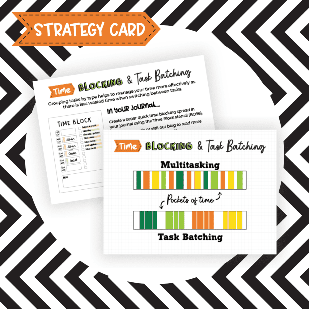 For each technique we have included a “strategy card” which will be a handy reference to keep inside your journal. For more insight into the individual strategies, check out our blog posts which can all be found in our productivity hub.