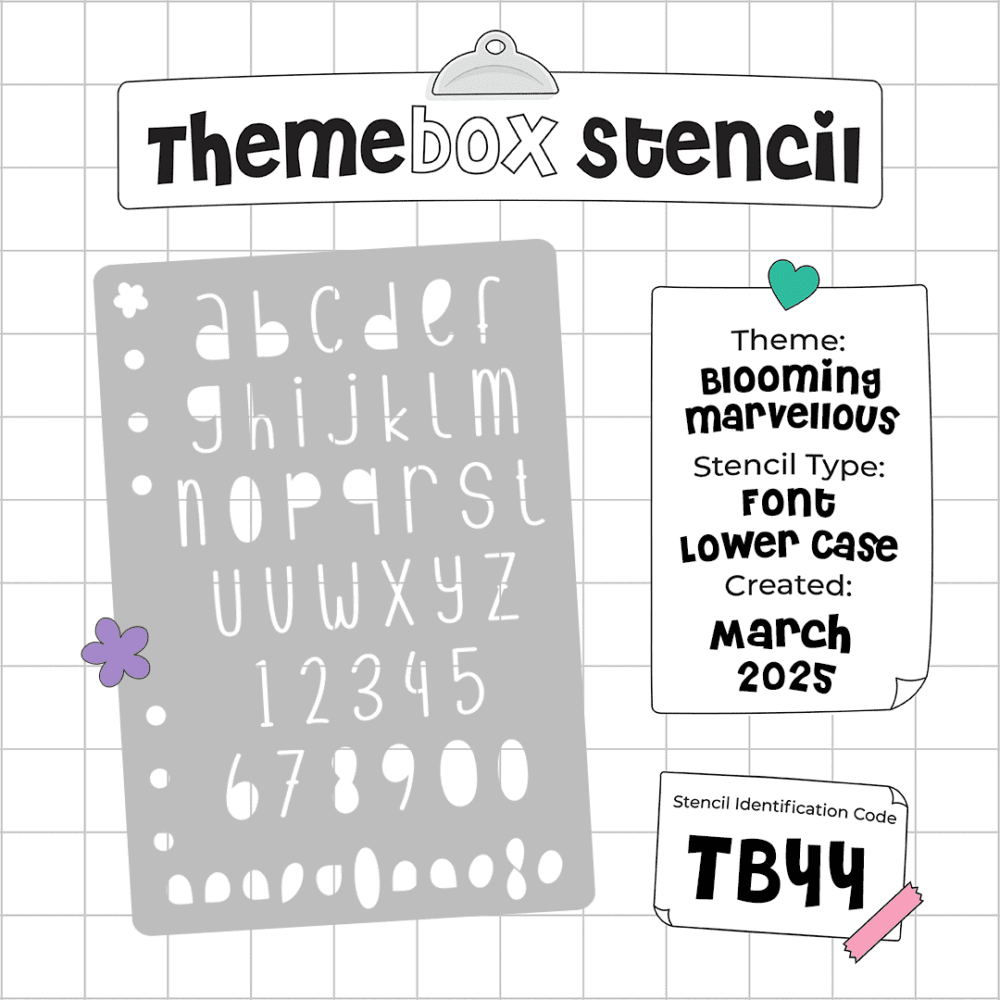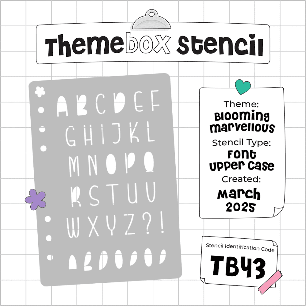 Our Tier 3 subscribers will find the Upper Case Font Stencil and Cheat Sheet inside their box! If you love the font and fancy completing the set, you’ll find the lower case variation available to purchase from our subscriber shop!