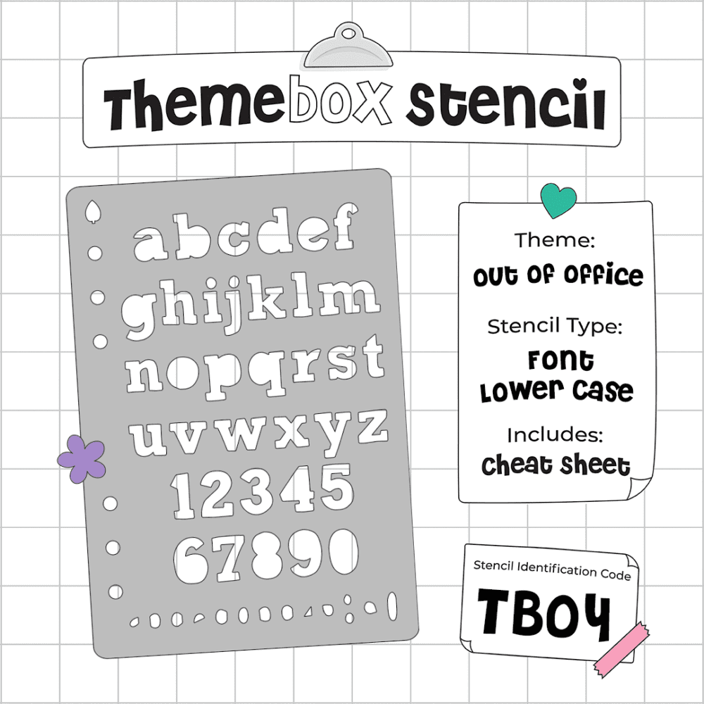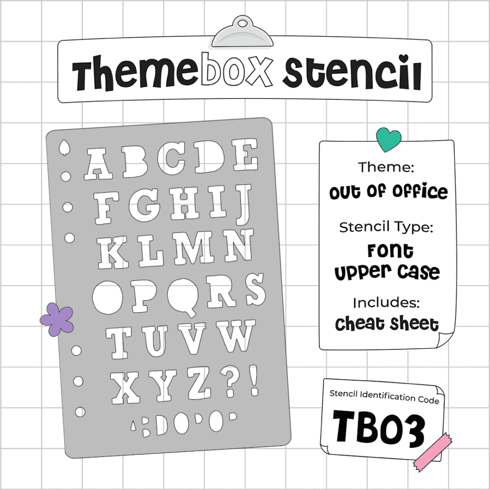 Our Tier 3 subscribers will find the Upper Case Font Stencil and Cheat Sheet inside their box! If you love the font and fancy completing the set, you’ll find the lower case variation available to purchase from our subscriber shop!
