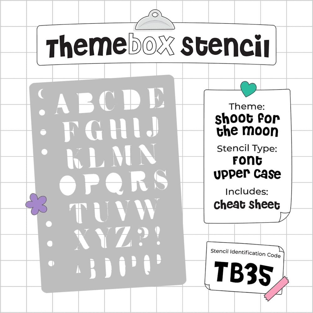 Our Tier 3 subscribers will find the Upper Case Font Stencil and Cheat Sheet inside their box! If you love the font and fancy completing the set, you’ll find the lower case variation available to purchase from our subscriber shop!