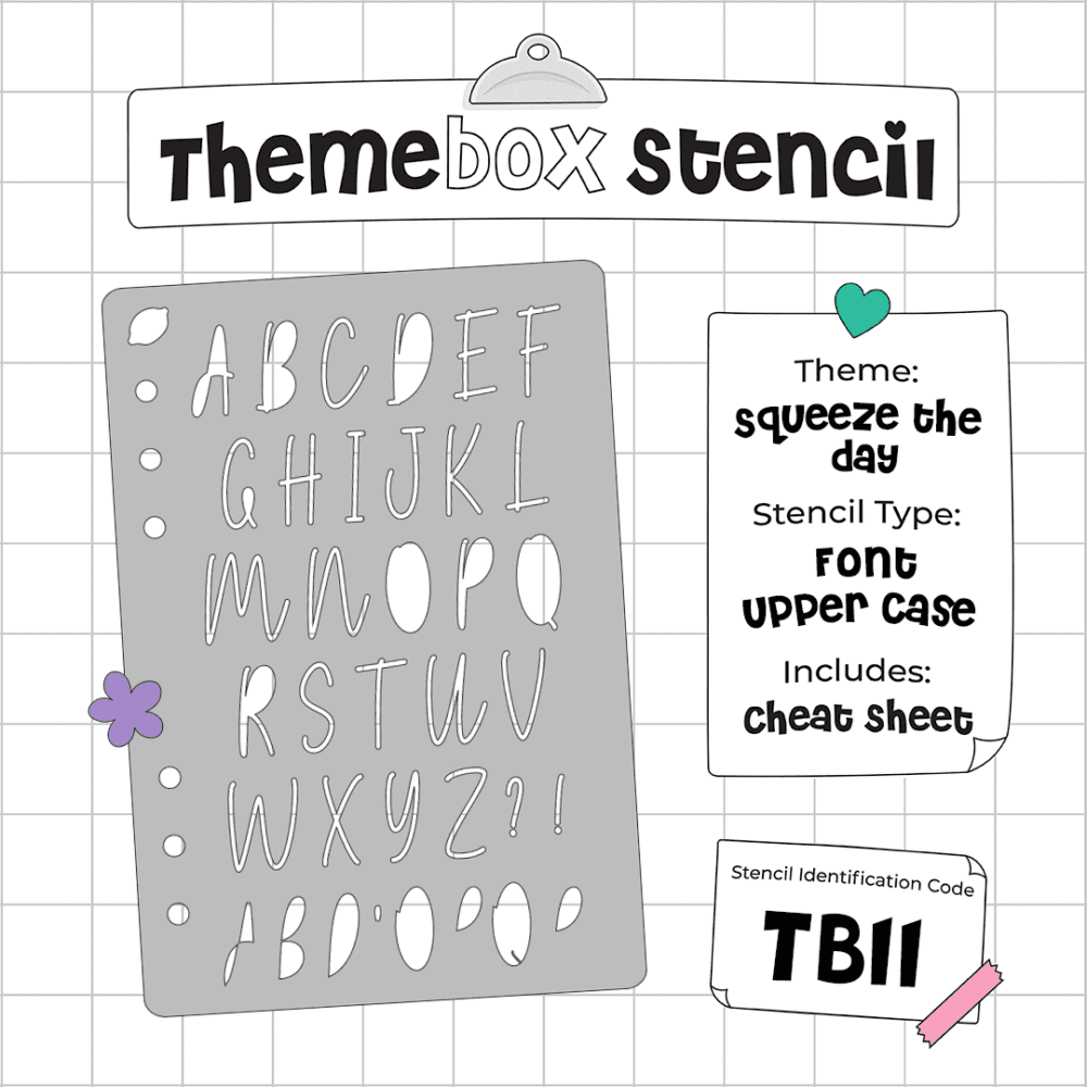 Our Tier 3 subscribers will find the Upper Case Font Stencil and Cheat Sheet inside their box! If you love the font and fancy completing the set, you’ll find the lower case variation available to purchase from our subscriber shop!