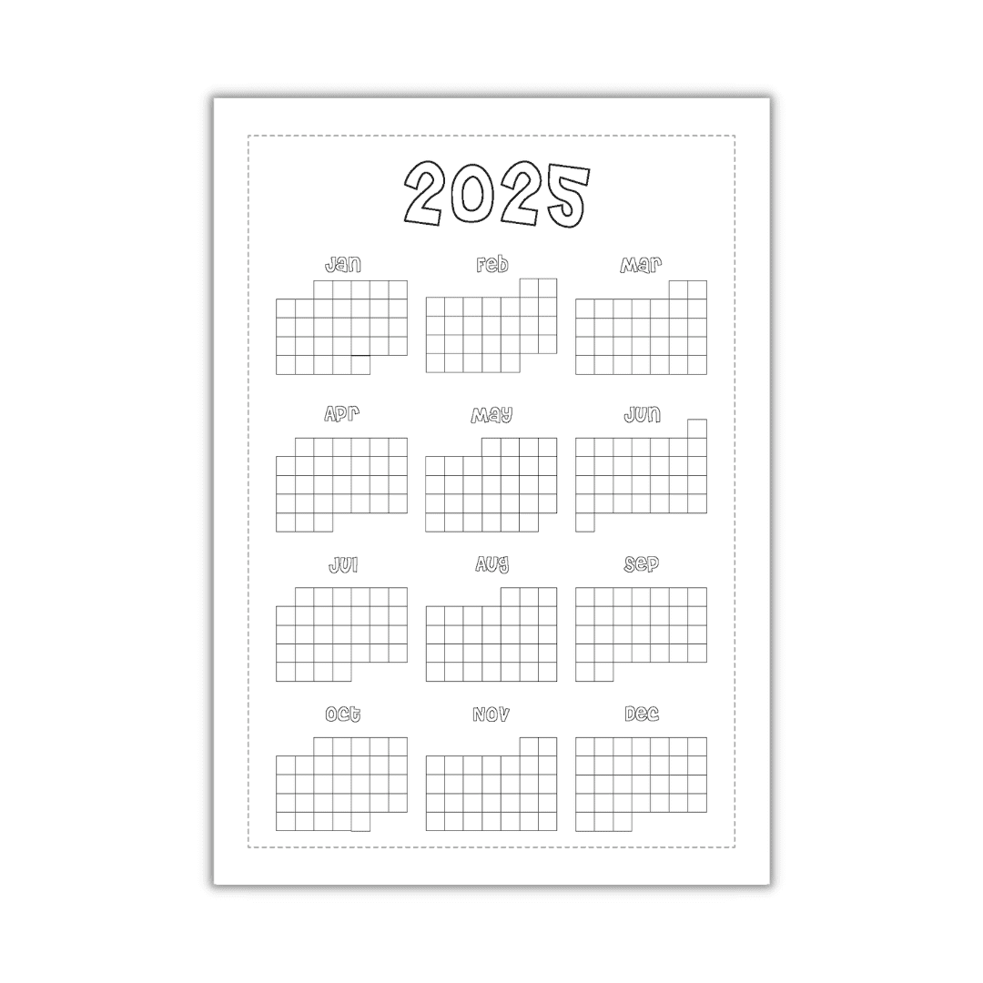 Our 2025 Monthly Habit Tracker journal worksheet is downloadable as a high quality PDF for you to print at home. Designed to help you track your habits for a whole year! – Simply colour in a square every time you do you task!