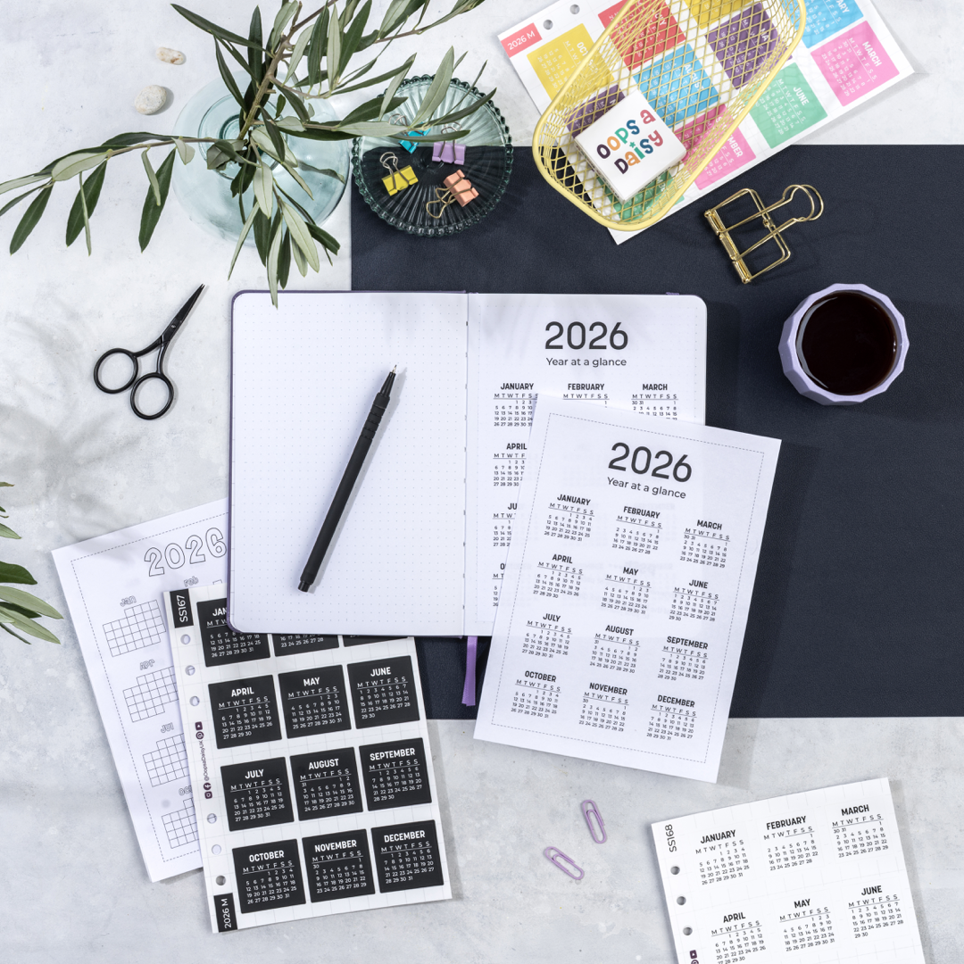 With a clean grid design, printed in crisp white text on a slick black background, these calendars add gentle structure without visual clutter. Ideal for planners, bullet journals, memory keeping, and project planning where seeing the whole month really matters.