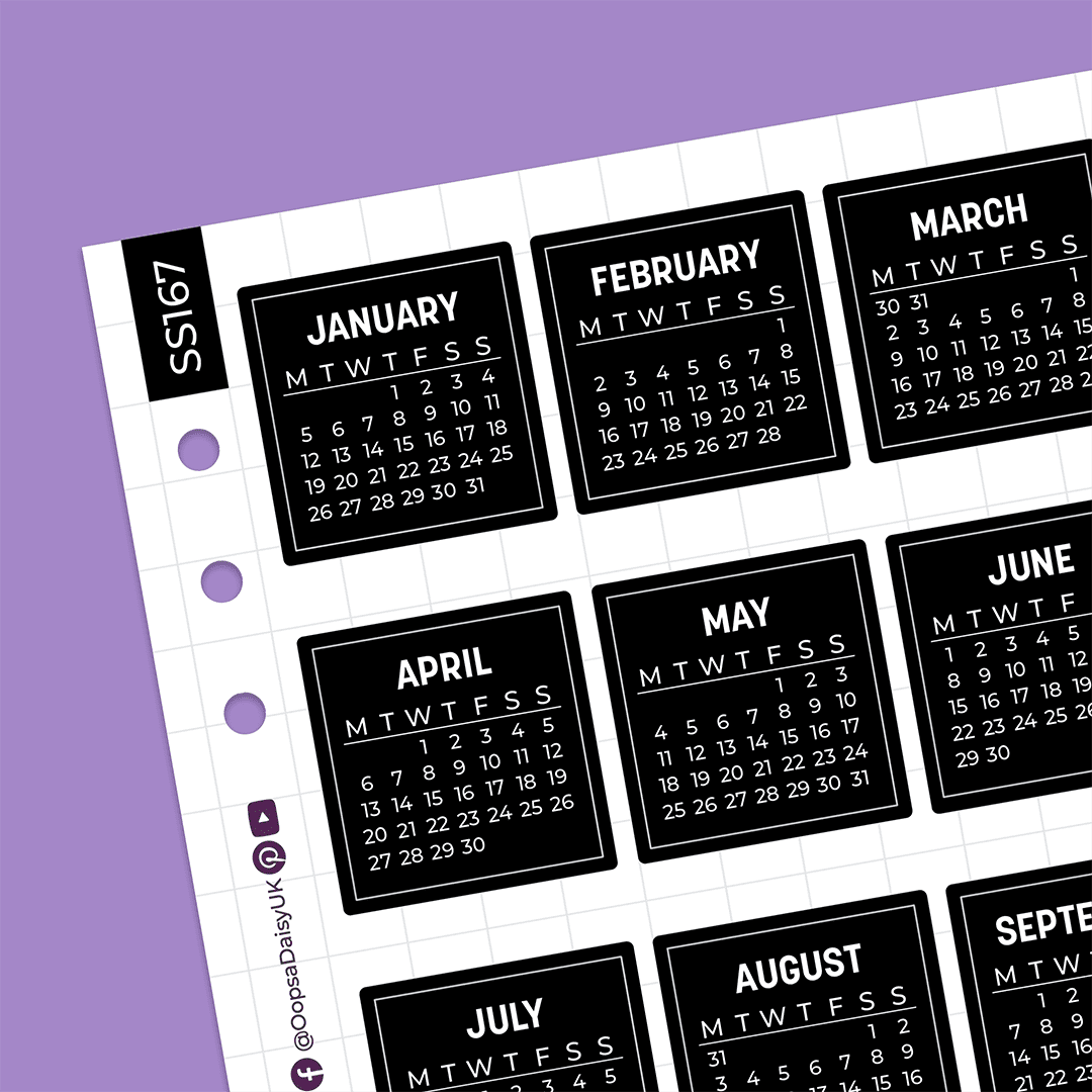 Plan ahead at a glance with these mini monthly calendar stickers, perfect for adding a full overview to your planner or journal. Each sticker features a complete month layout with weekdays clearly displayed, making forward planning super easy!