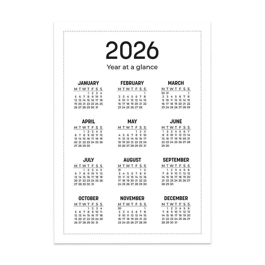 The crisp black-and-white design keeps things uncluttered and works beautifully with any planning style, whether you colour-code, highlight key dates, or leave it minimal. This single-page layout is ideal for yearly goal planning, anniversaries, countdowns, or simply staying one step ahead all year long.