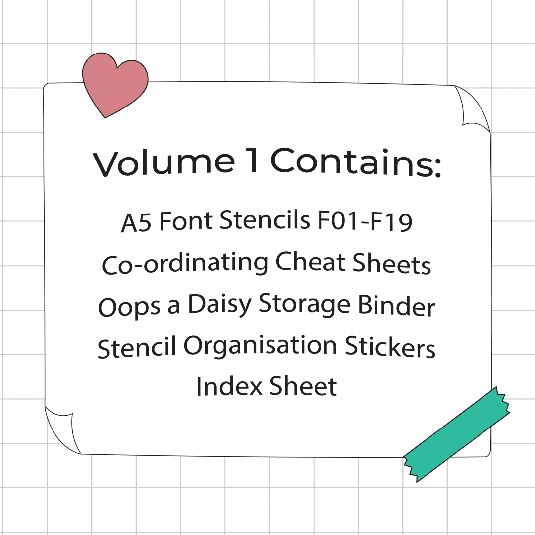 We’ve bundled together 19 of our individual A5 Font Stencils in a fabulous Oops a Daisy Storage binder.