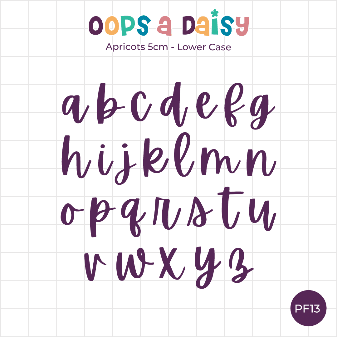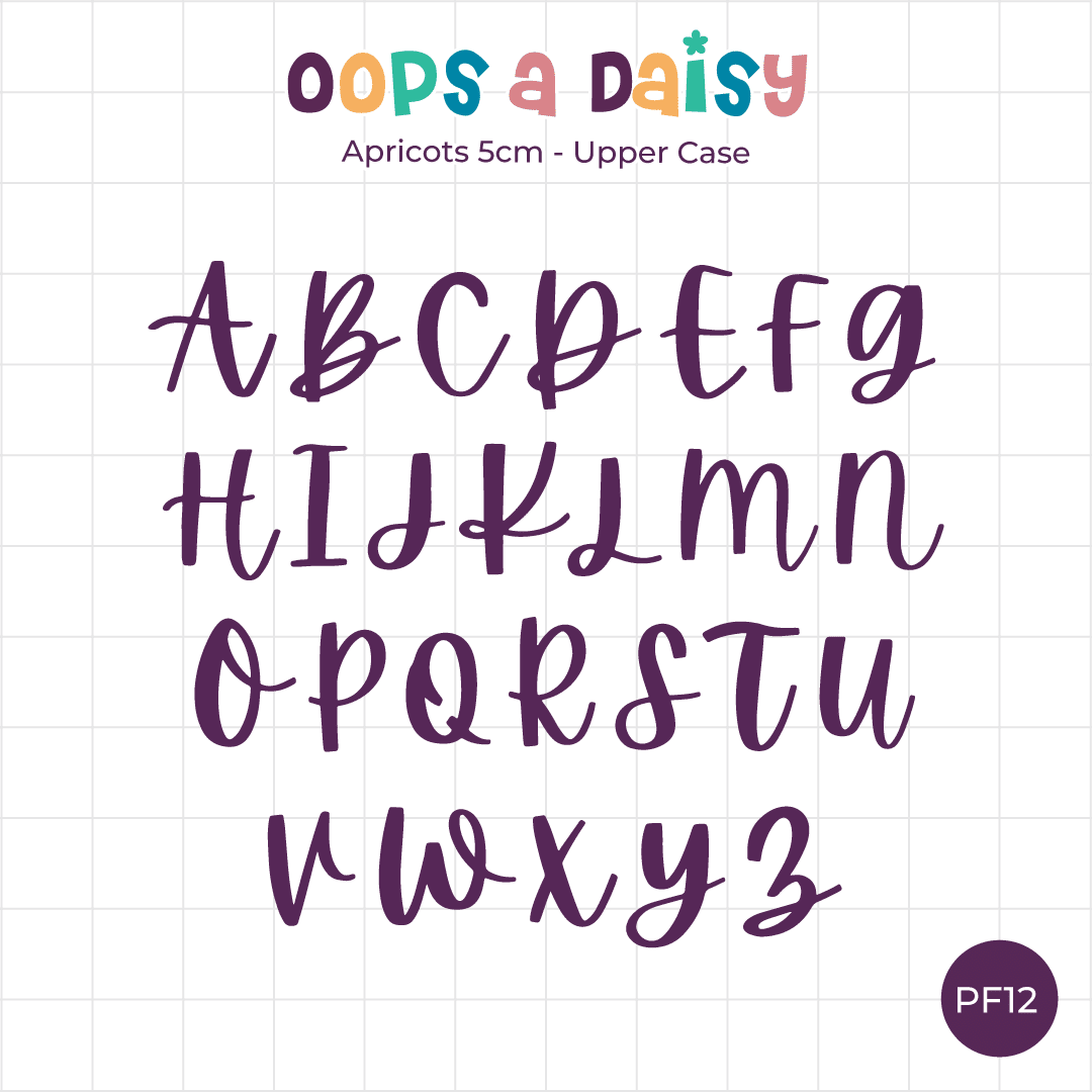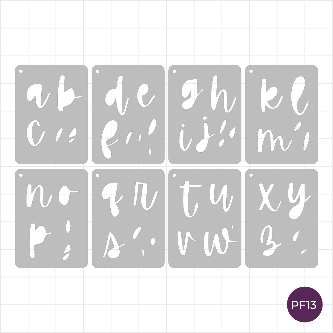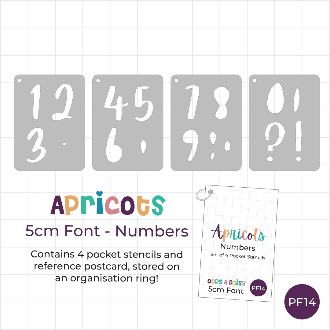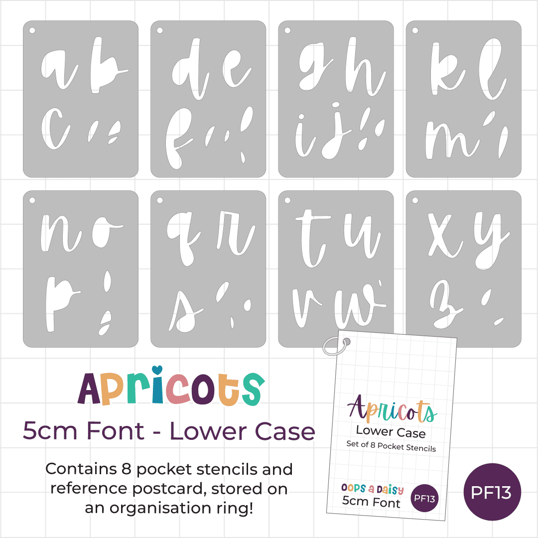 These sets of pocket-sized stencils feature 5cm high letters of our calligraphy-style ‘Apricots’ Font, in sets of upper case, lower case, and numbers.