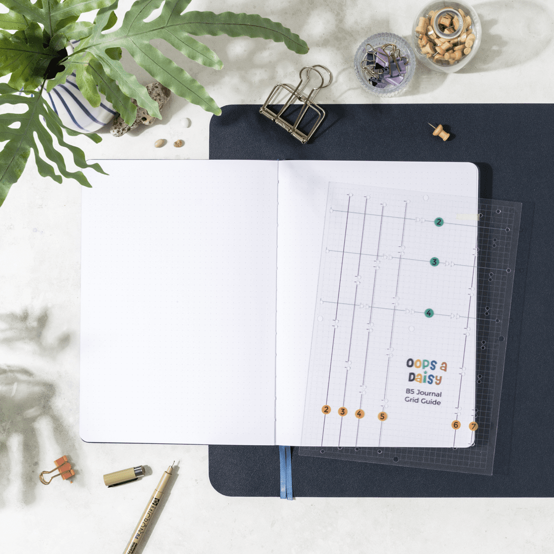 If you moved to B5 because you like a bit more room to decorate, why not use the A5 Journal Grid Guide and leave room for washi, stickers and doodles!