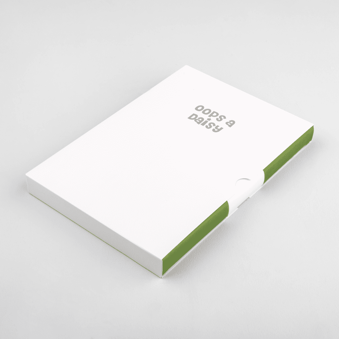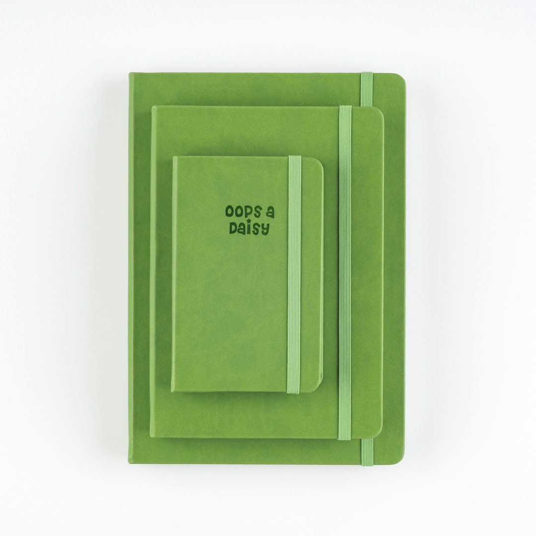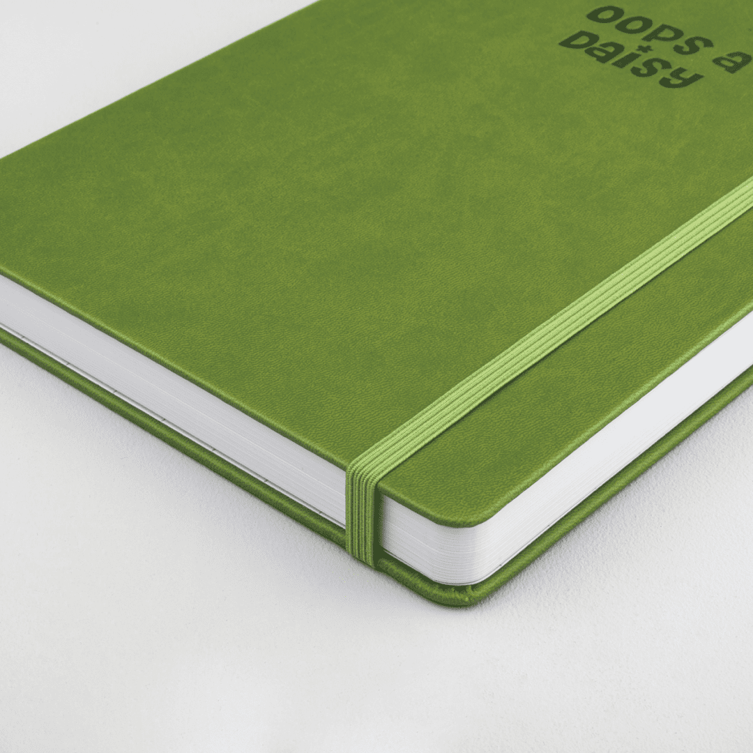 This B5 dotted journal features a gorgeous pistachio green faux-leather cover, de-bossed with the Oops a Daisy logo.