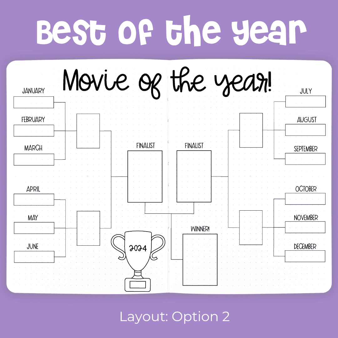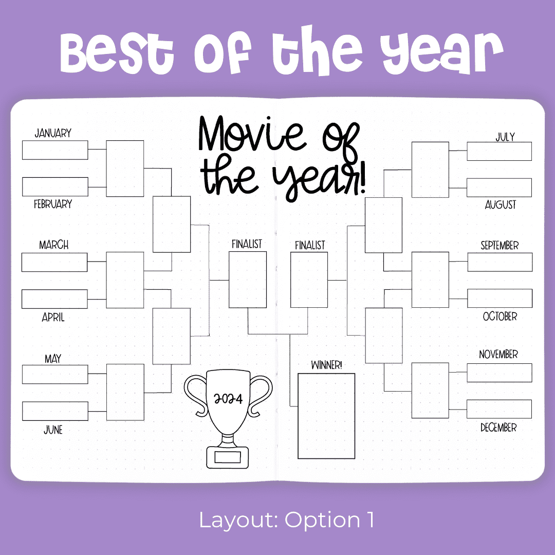 Create a tournament or “brackets” style spread to record your favourite books, films or tv of the year. Pit your monthly favourites head to head in order to crown a champion!
