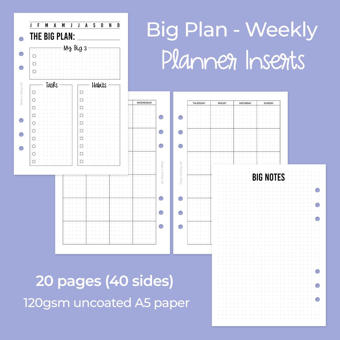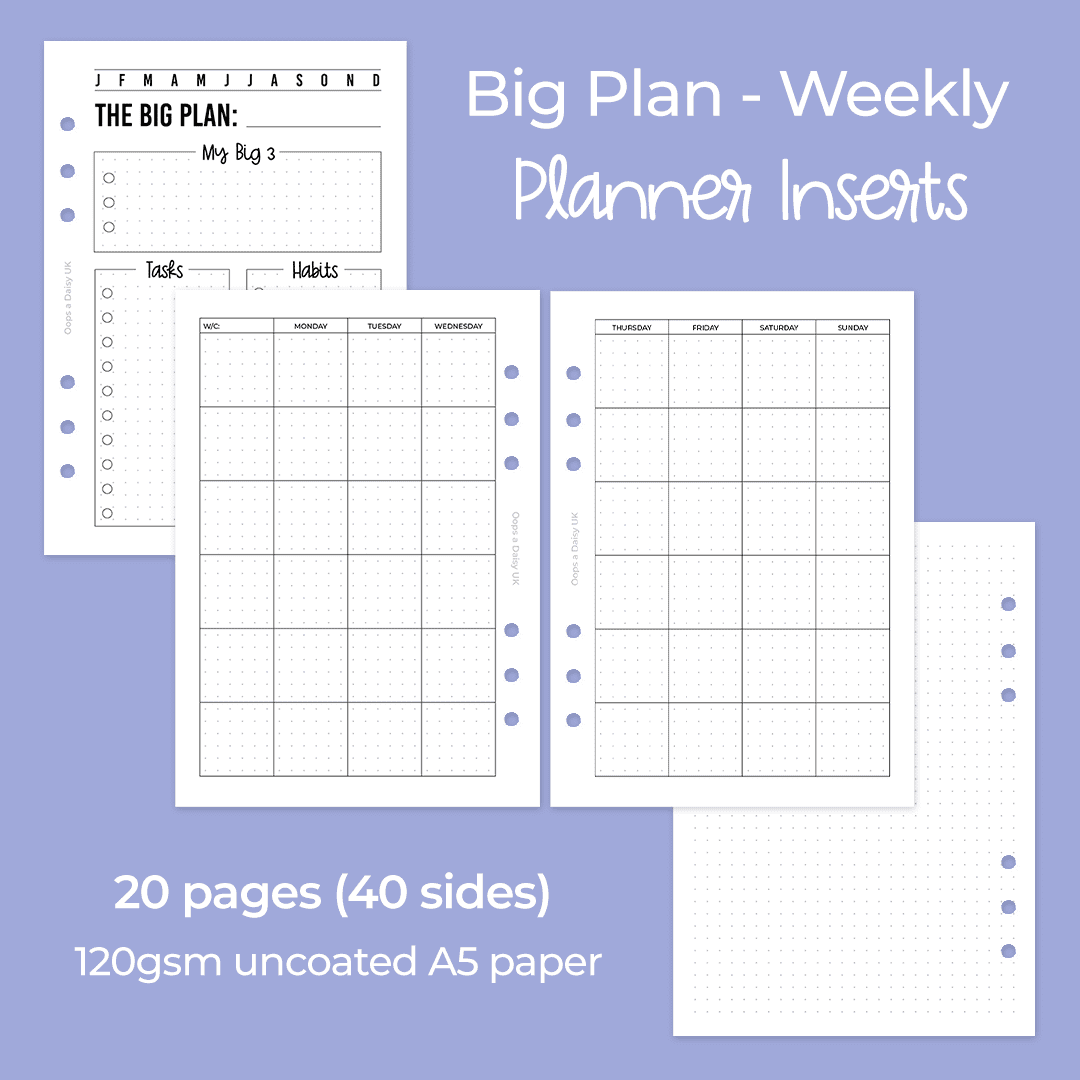 Undated ‘Big Plan’ Weekly Spread- A5 Planner Inserts