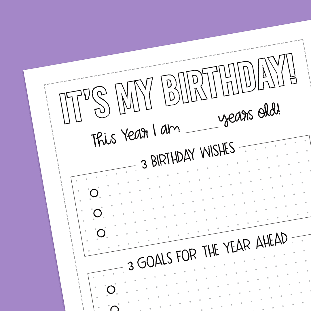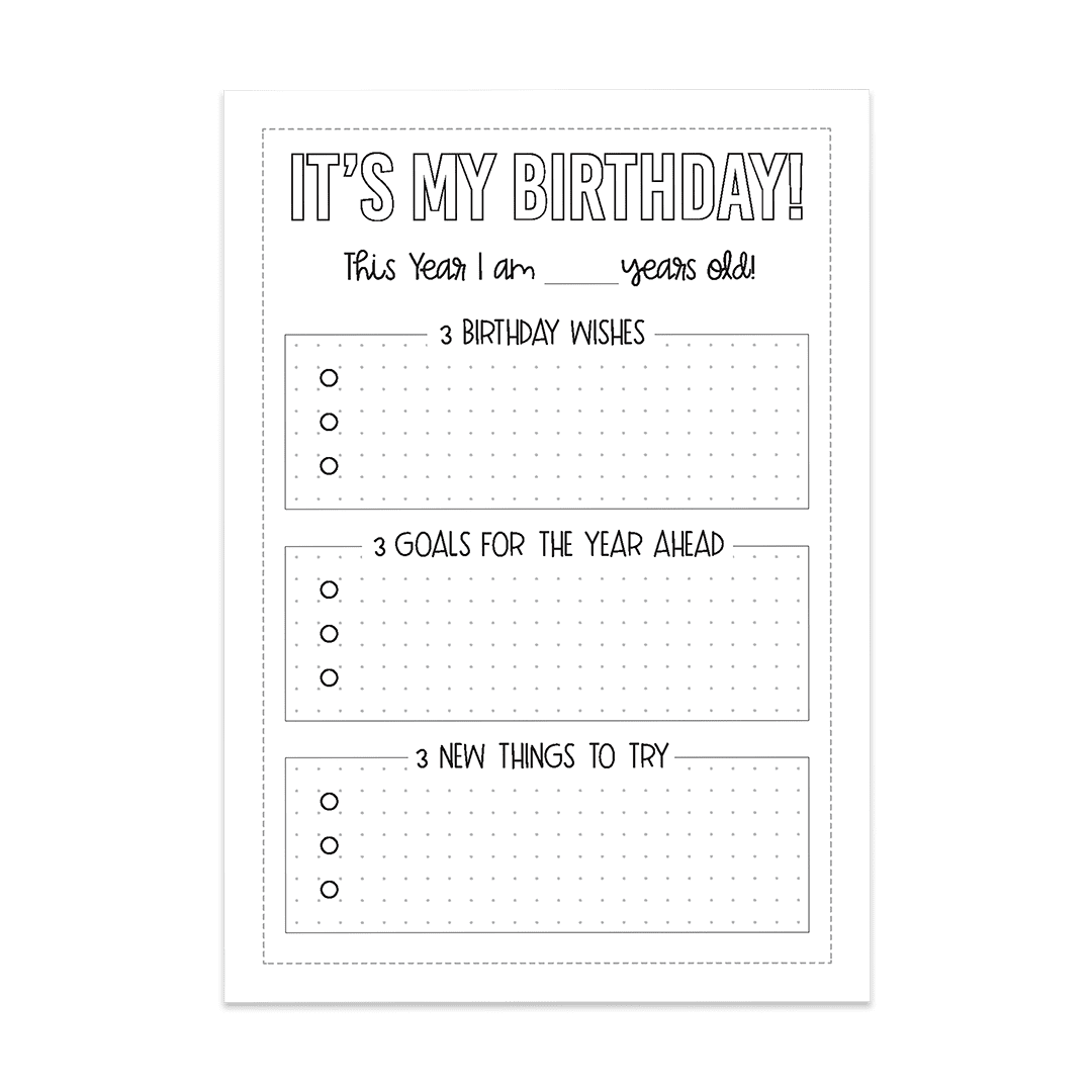 With a clean black-and-white layout and dotted areas for easy writing, this single-page birthday layout works beautifully in planners, journals, and memory-keeping spreads. It’s a simple and joyful way to turn your birthday into a snapshot you’ll love looking back on year after year.