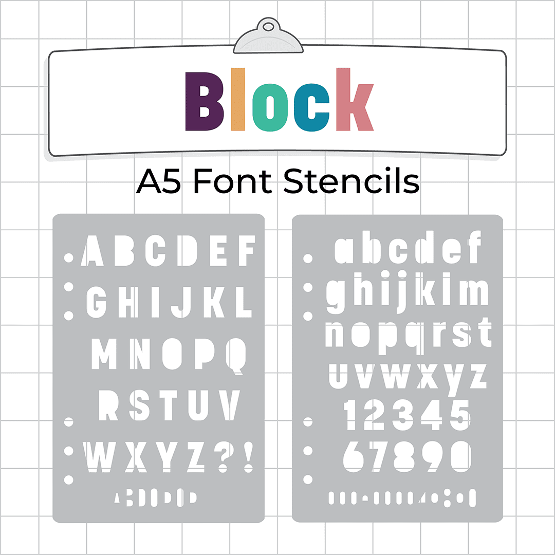 About the Block Font – A5 Font Stencil – Upper or Lower Case Alphabet