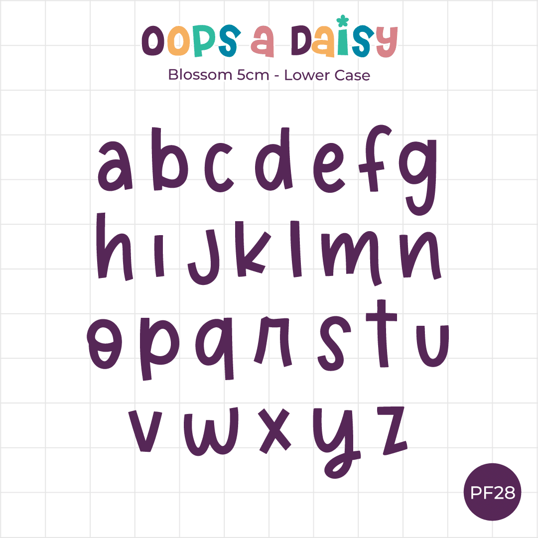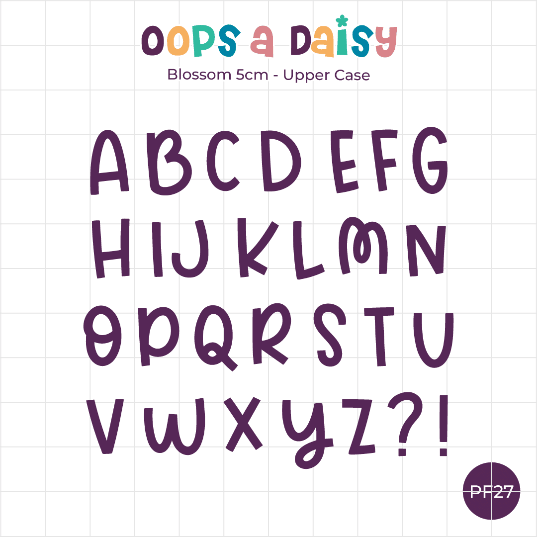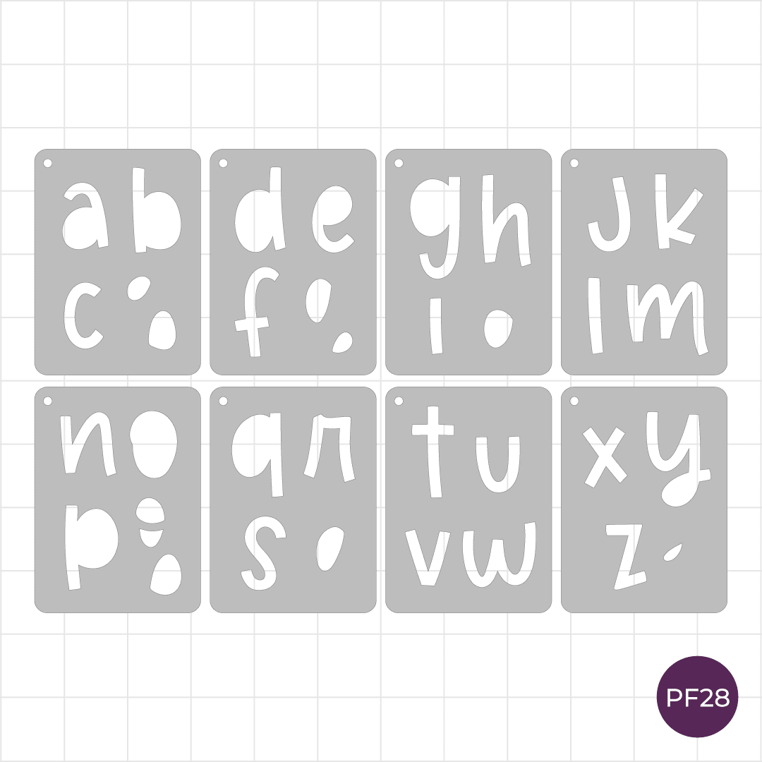 These sets of pocket-sized stencils features 5cm high letters in our fun “Blossom” Font, in sets of upper case, lower case, and numbers.