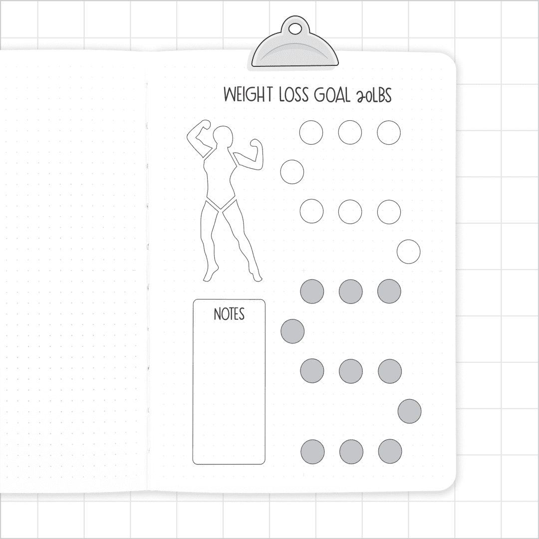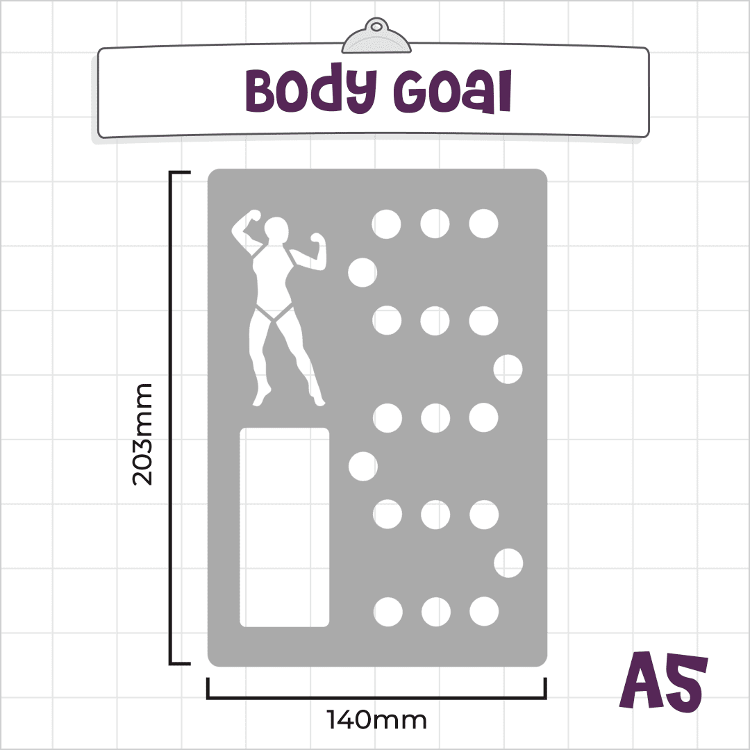 This journal stencil is designed to help you track your fitness or weight loss goals in your journal, with spaces to log your progress and write your goal.