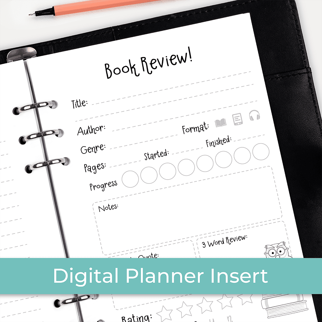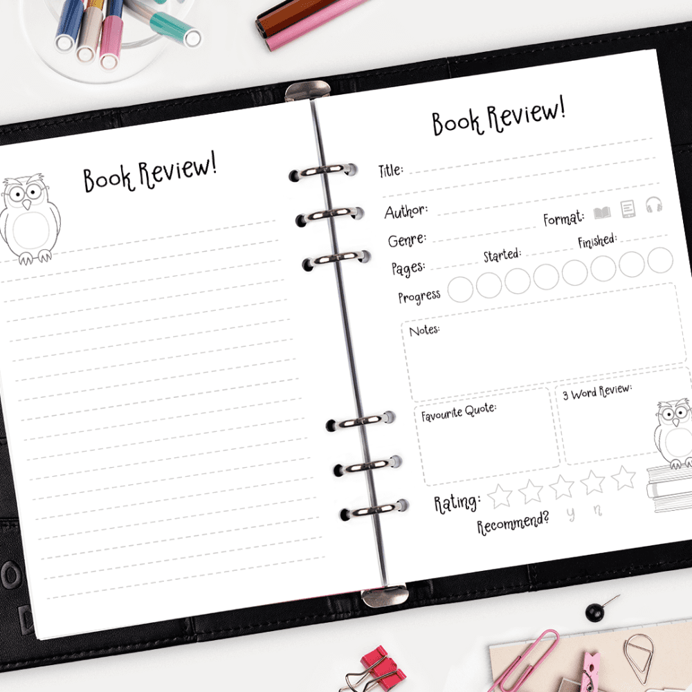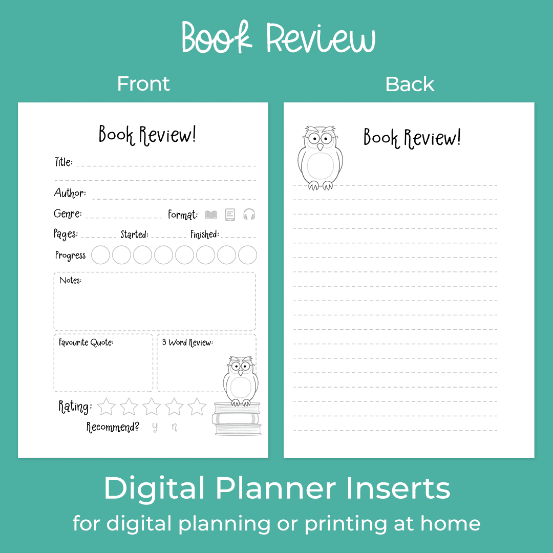 Our book review planner inserts are perfect for all bookworms! With plenty of space to write all the important details of your latest read, and a notes page on the back to add pictures and more.