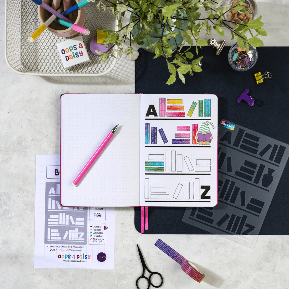 This bookshelf stencil features 31 books, so you can create a reading tracker or even a monthly habit tracker.