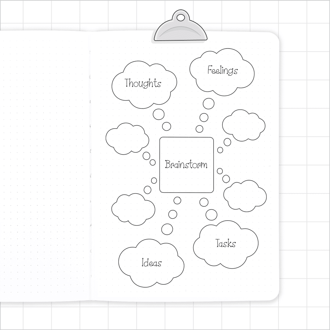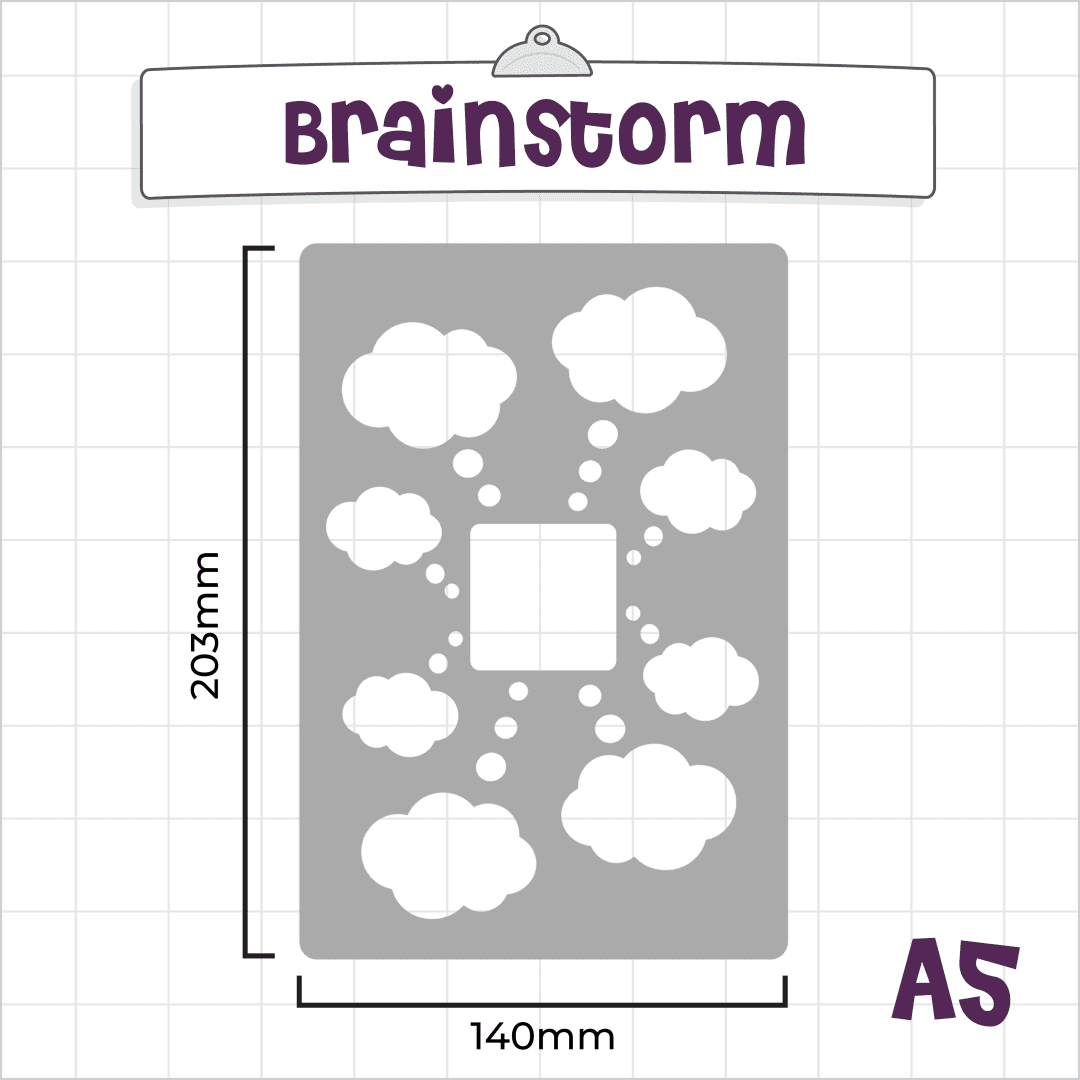 This journal stencil helps you to quickly create a page to brainstorm all your big ideas, with several thought bubbles and a space to write in the centre.