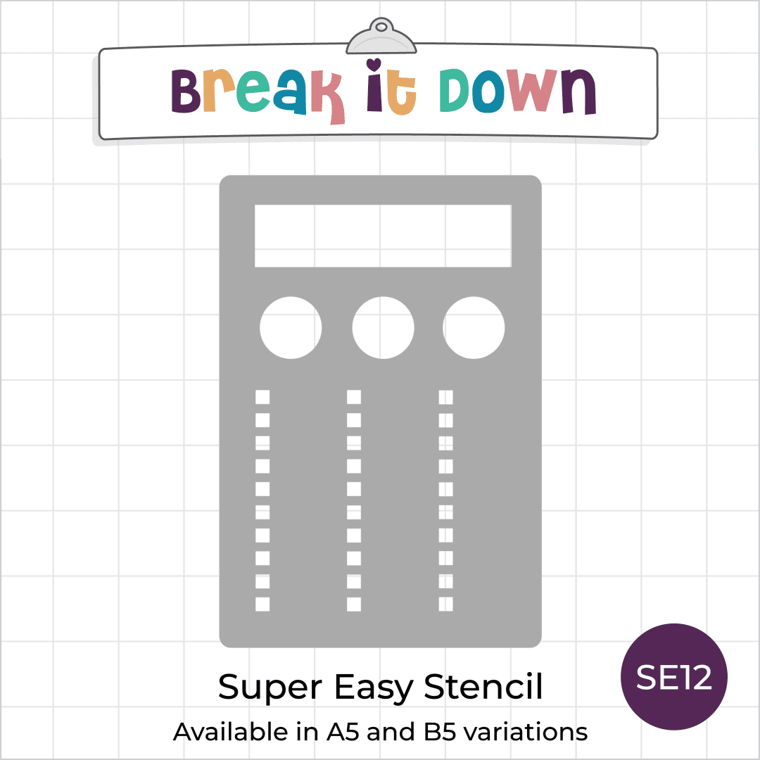 This journal stencil is designed to help you break a goal down into smaller, more manageable chunks! With space for a main heading, plus three separate icons and checklists.
