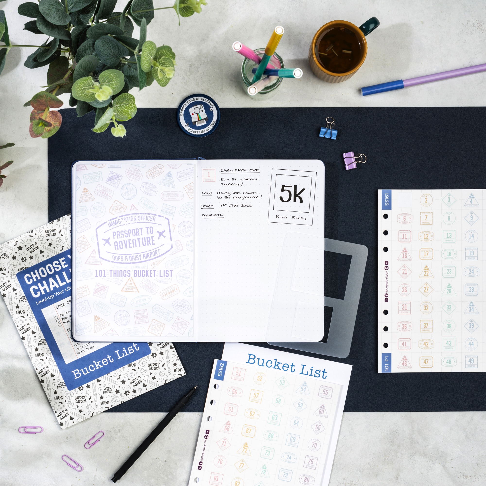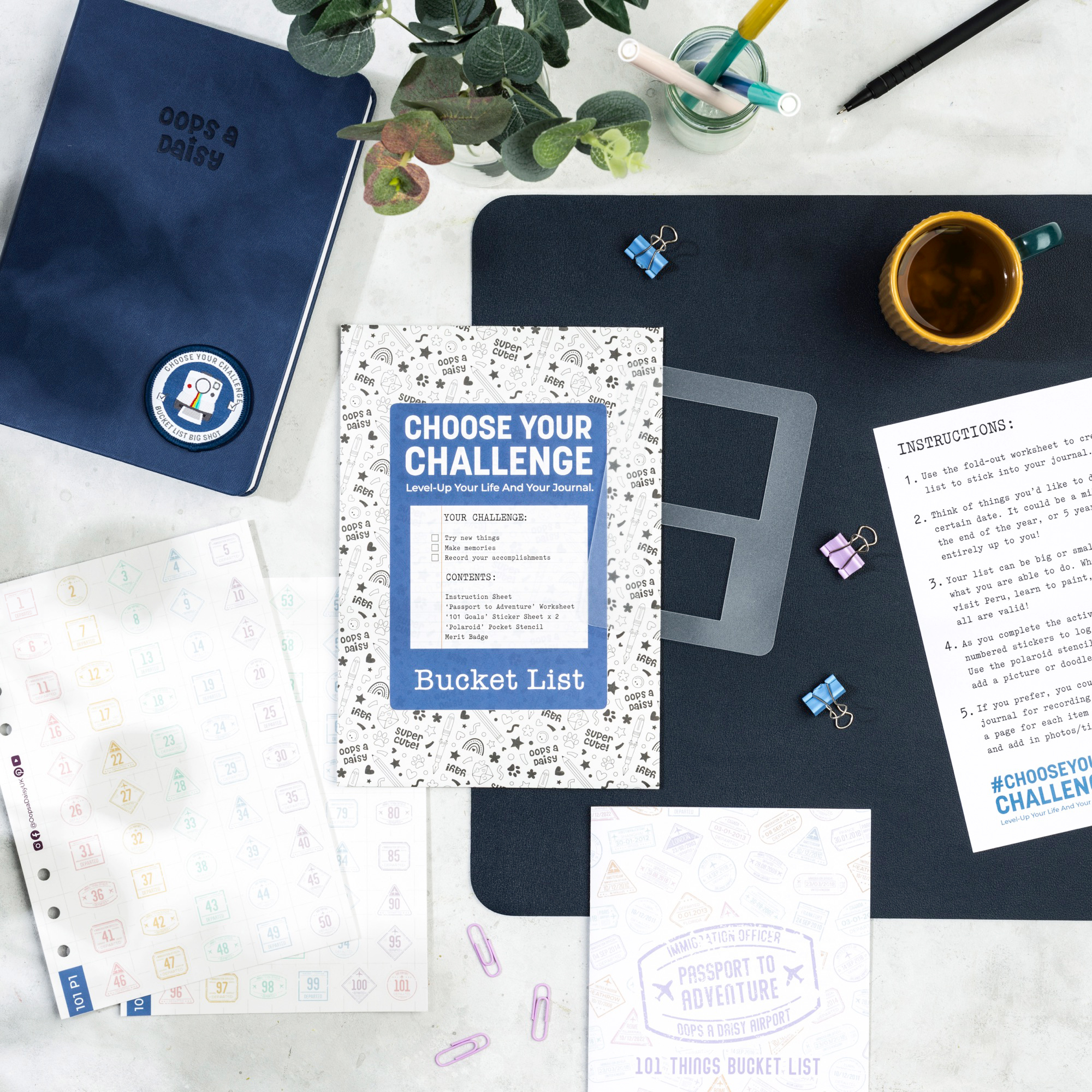 This journaling challenge kit features everything you need to create your own bucket list challenge in your journal. Whether you want to try new things, make some memories, or record your accomplishment, this kit makes it easy and fun!