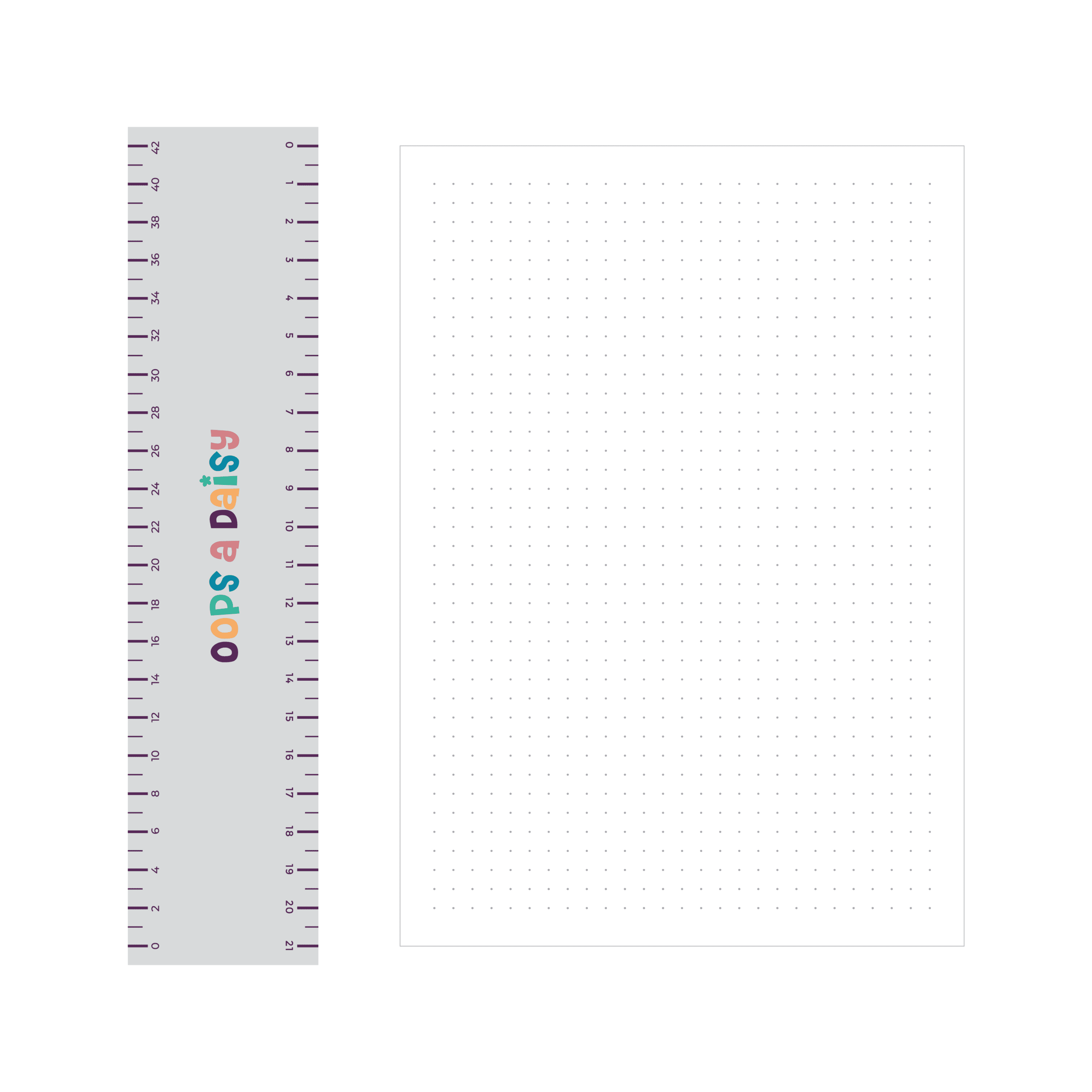 Simply use the ruler to measure the area you need to cover up, cut out from the dot grid sticker paper, then stick over your mistake to repair your spread!