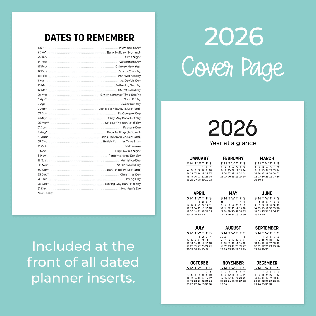 Combine our planner inserts to create your perfect planner! All of our inserts are designed so that, if desired, you can decorate with Washi tape and stickers, add colour to the headers, and customise to your specific needs.