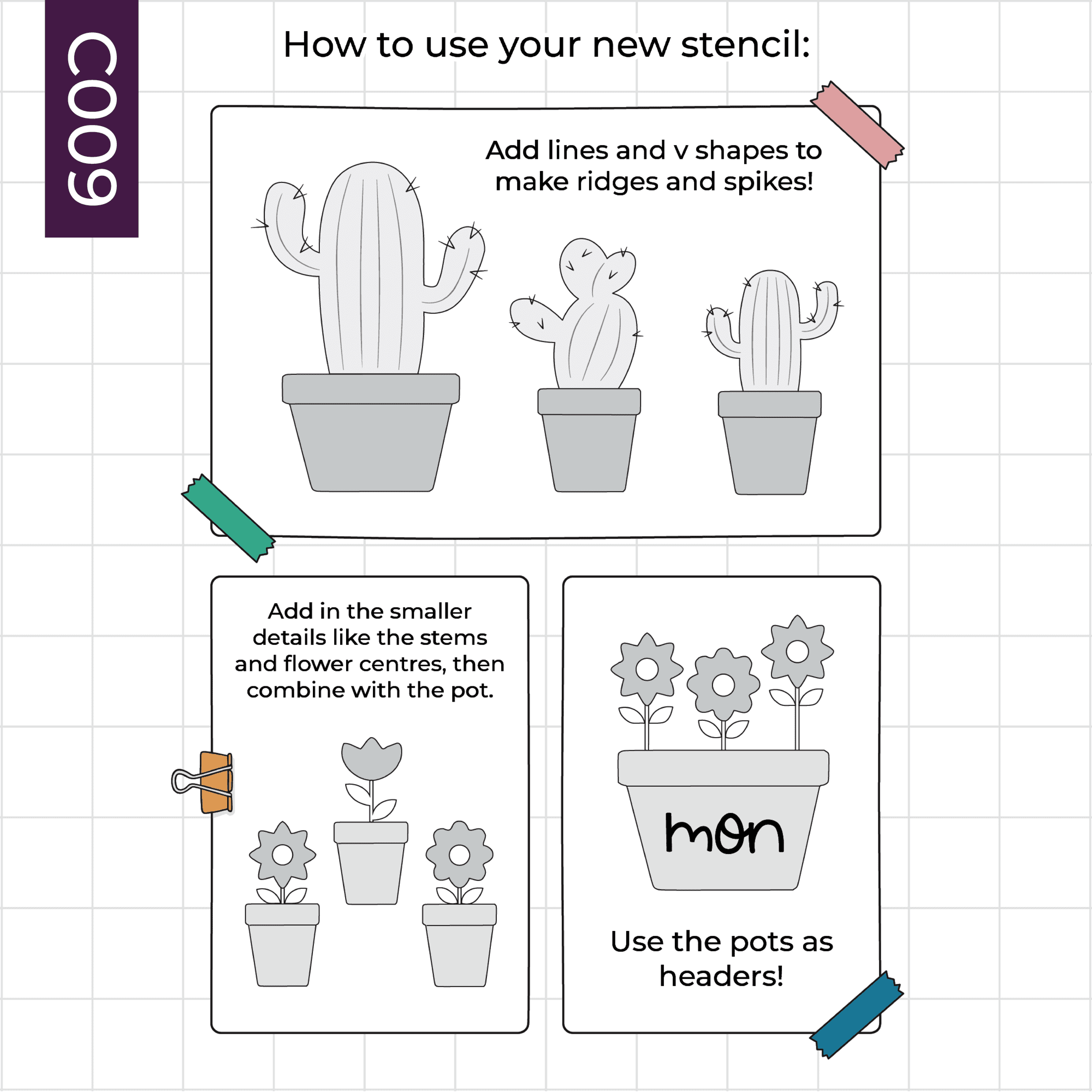 This cactus journal stencil helps you to add cute cacti and plants to your bullet journal spreads.