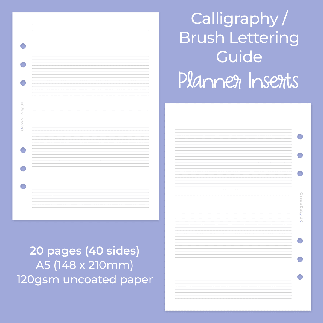 These A5 calligraphy and brush lettering guide sheets feature evenly spaced solid and dotted lines to help you easily practice your lettering. Mix and match our planner inserts to create your perfect planner.