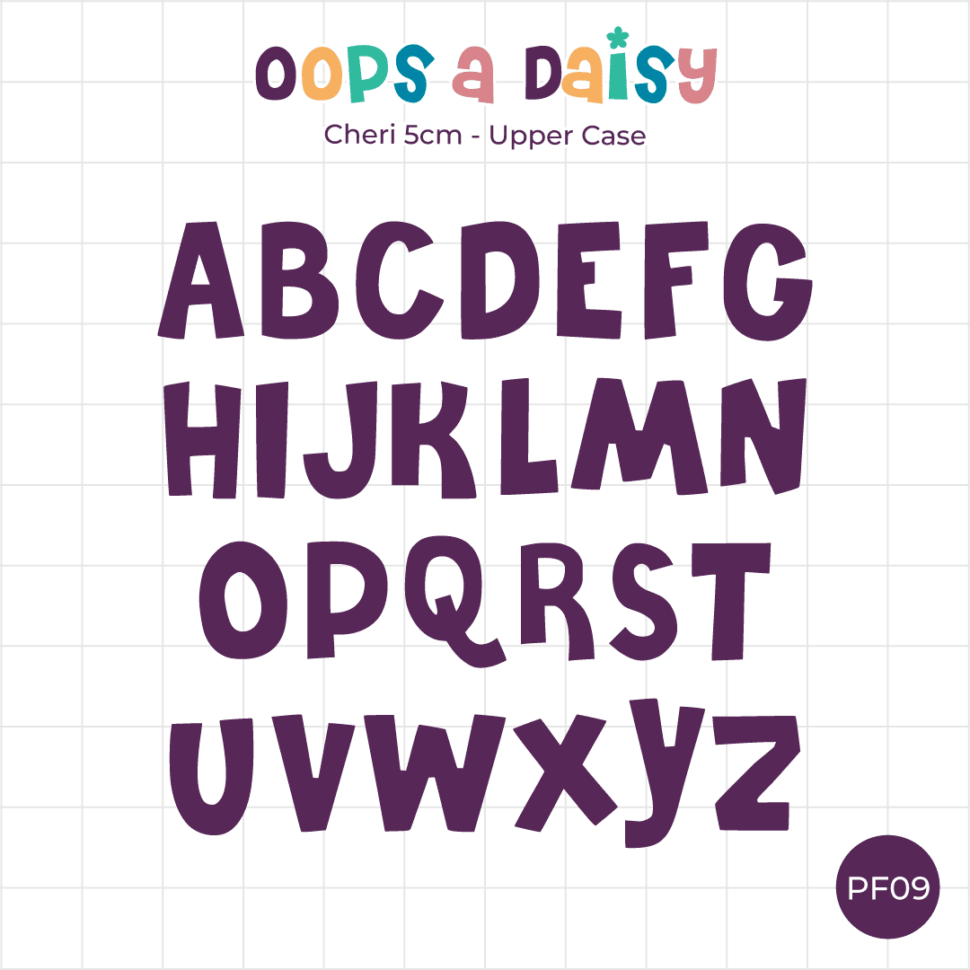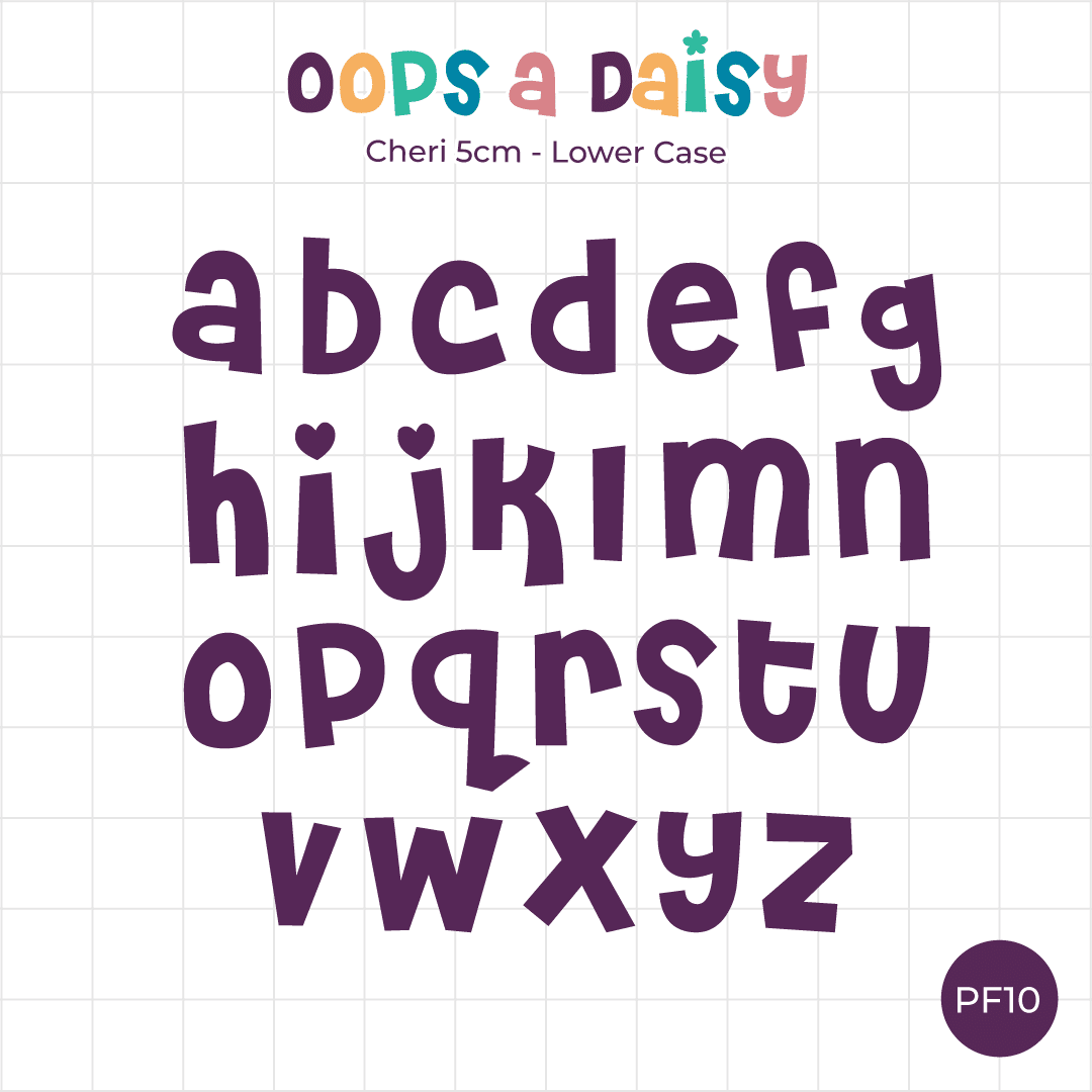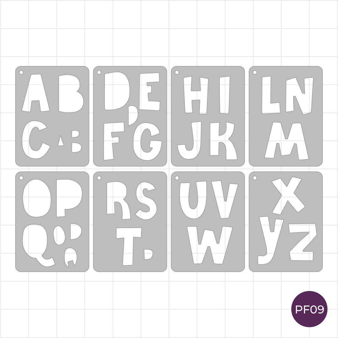 These sets of pocket-sized stencils feature 5cm high letters in our funky ‘Cheri’ Font, in sets of upper case, lower case, and numbers.
