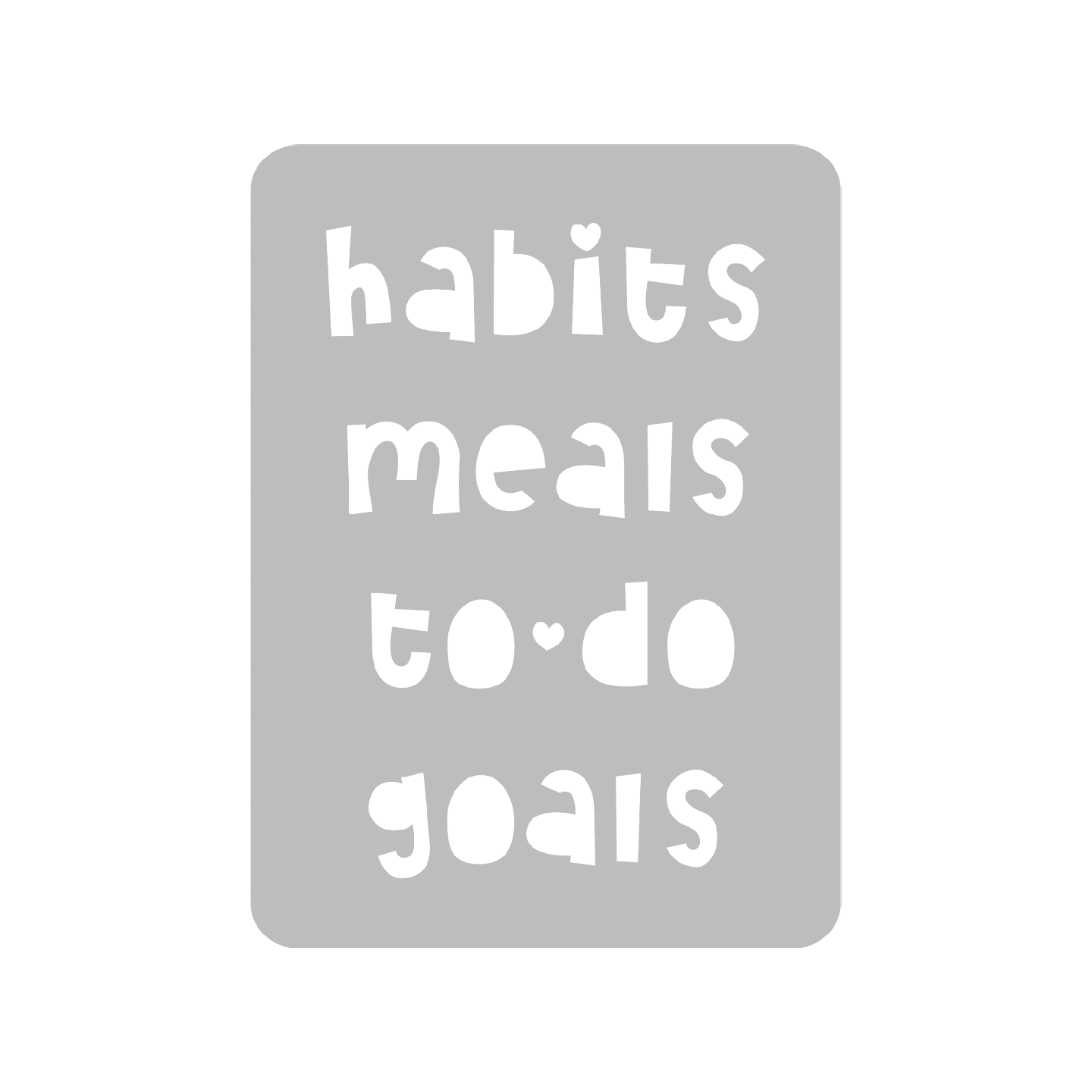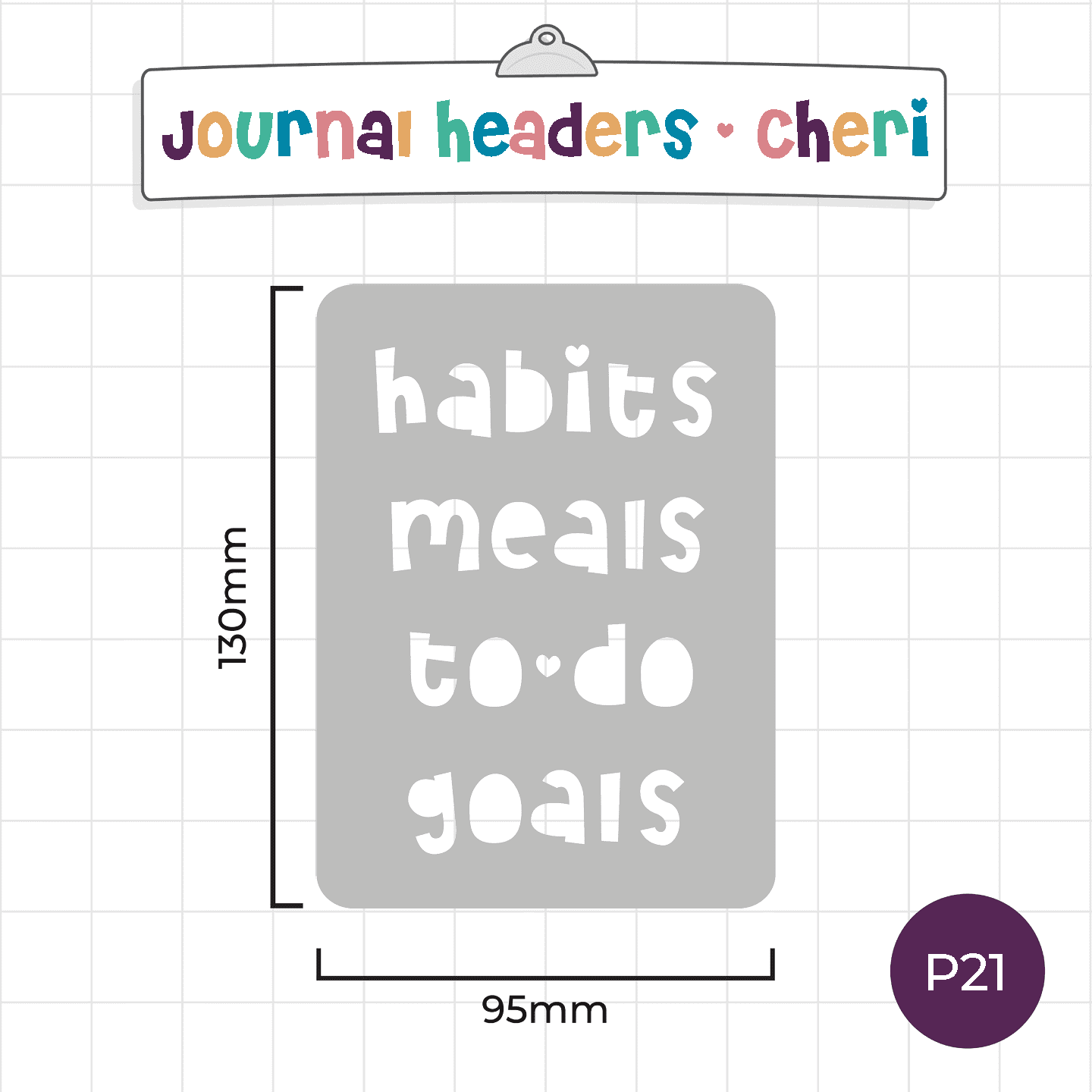 This pocket stencil is designed to make quick work of spread setup, with headers for all of your favourite spreads in our classic ‘Cheri’ font. The lettering on this stencil set is approximately 1.5cm high.