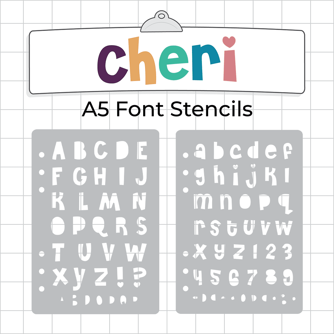 These Cheri Font Journal Stencils feature sweet, playful lettering that’s perfect for adding personality to journal and planner pages. With its cute, rounded shapes and decorative details, the 2cm (approx) letters are ideal for titles, mood trackers, quotes, and creative spreads.