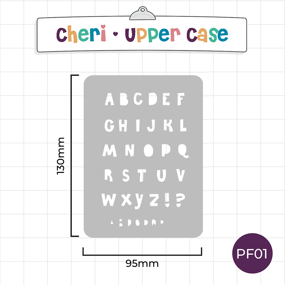 These Mini Cheri Font Journal Stencils feature sweet, playful lettering that’s perfect for adding personality to journal and planner pages. With its cute, rounded shapes and decorative details, this 1.5cm (approx) font is ideal for titles, mood trackers, quotes, and creative spreads.