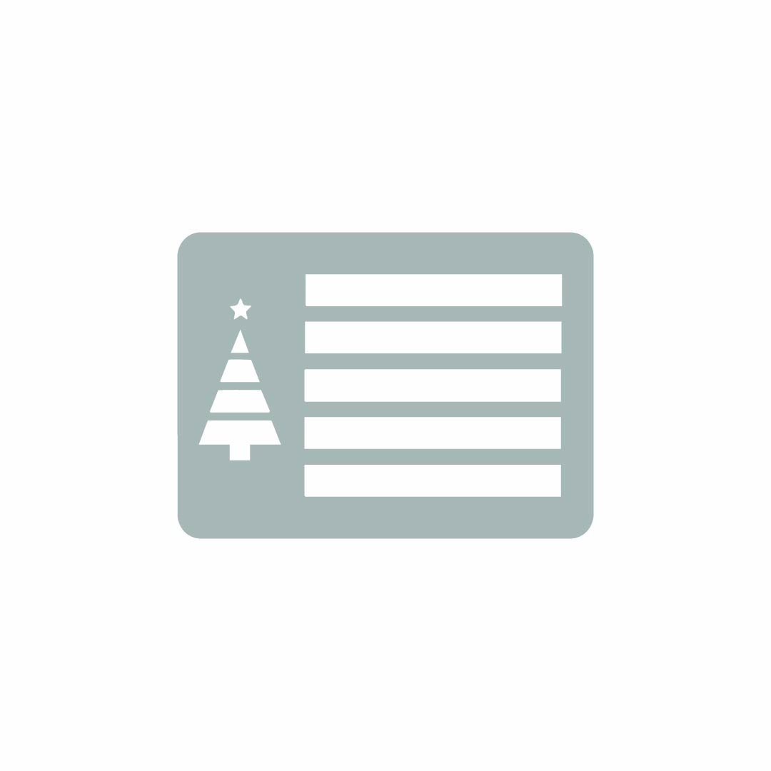 This handy little stencil contains guides to help you write a neat address on your Christmas card envelopes, plus a Christmas Tree icon to add a cute decoration.