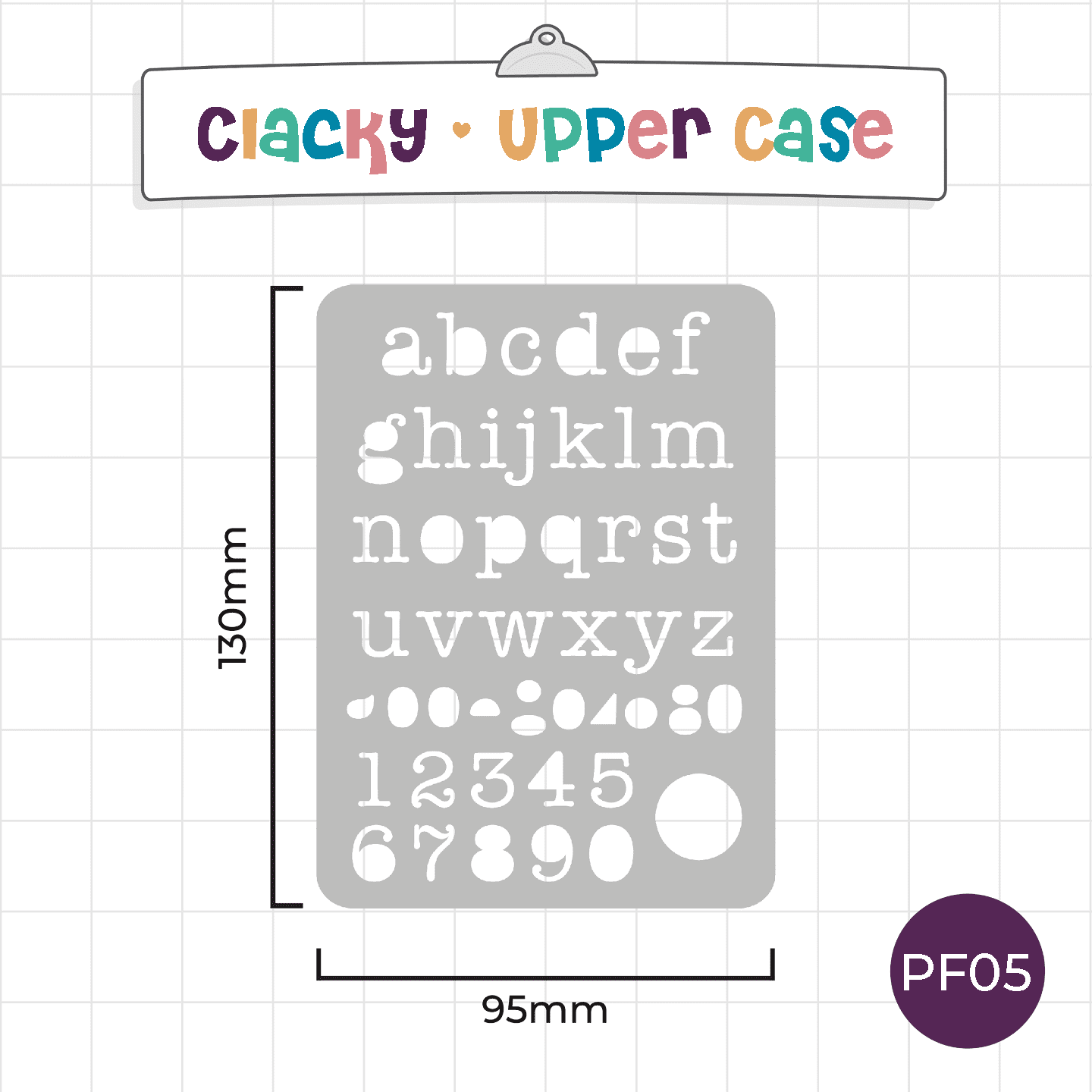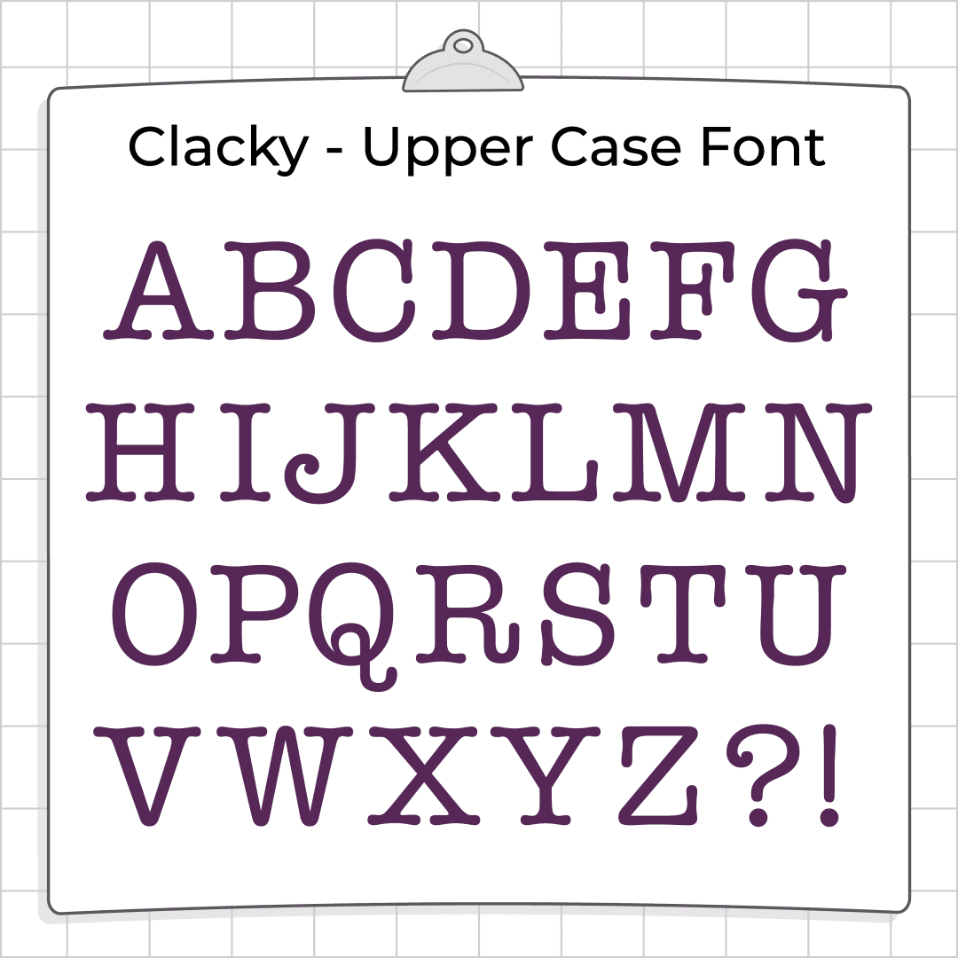 These Clacky Font Journal Stencils feature bold, chunky letterforms in a typewriter style, perfect for adding clear, confident lettering to journal and planner pages. The rounded 1.5cm (approx) serif letters works especially well for headers, quote pages and book or reading-themed spreads.