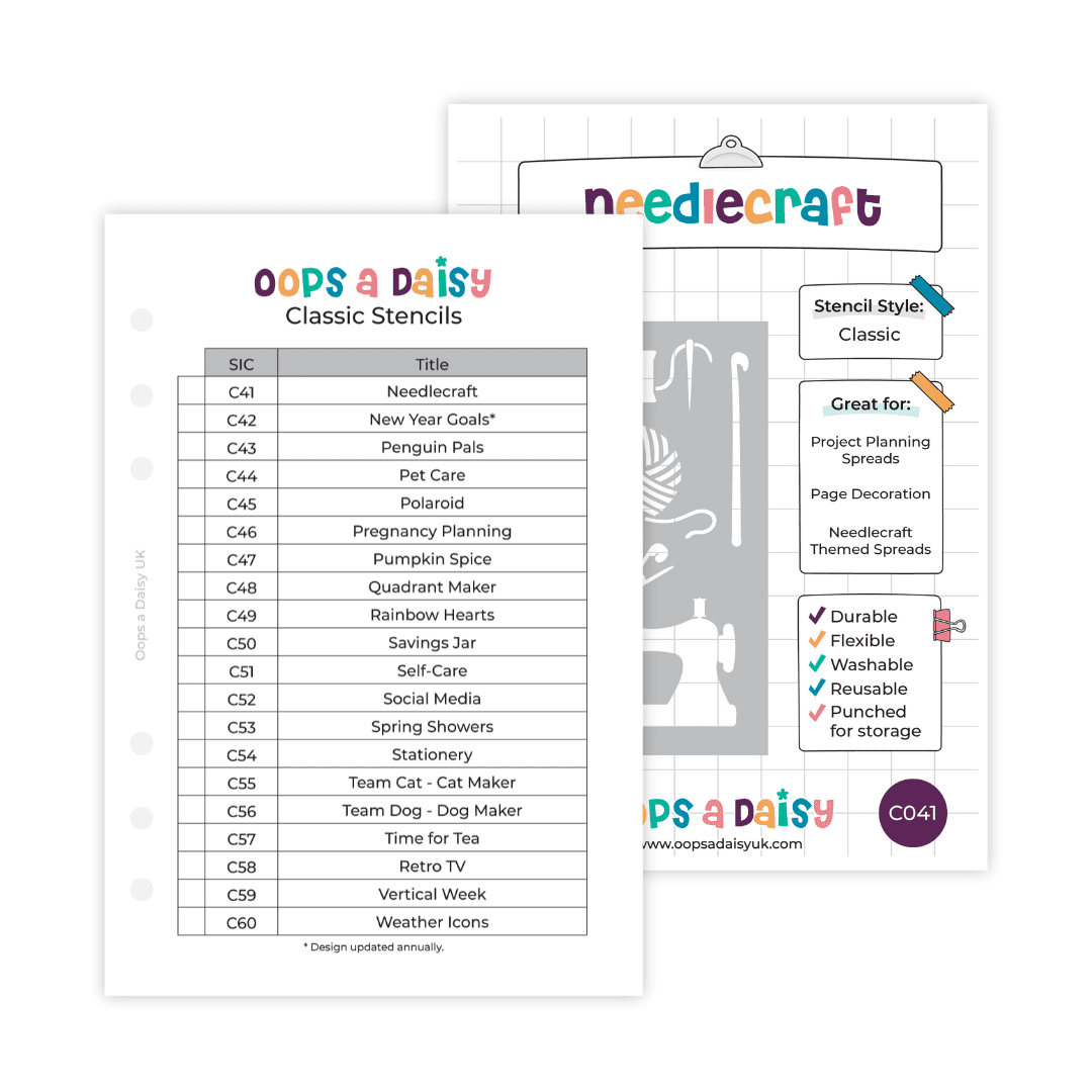 Due to popular demand, we have bundled together 20 of our individual Classic Stencils in a fabulous Oops a Daisy Storage binder, saving a massive 30% on the RRP of the individual items.