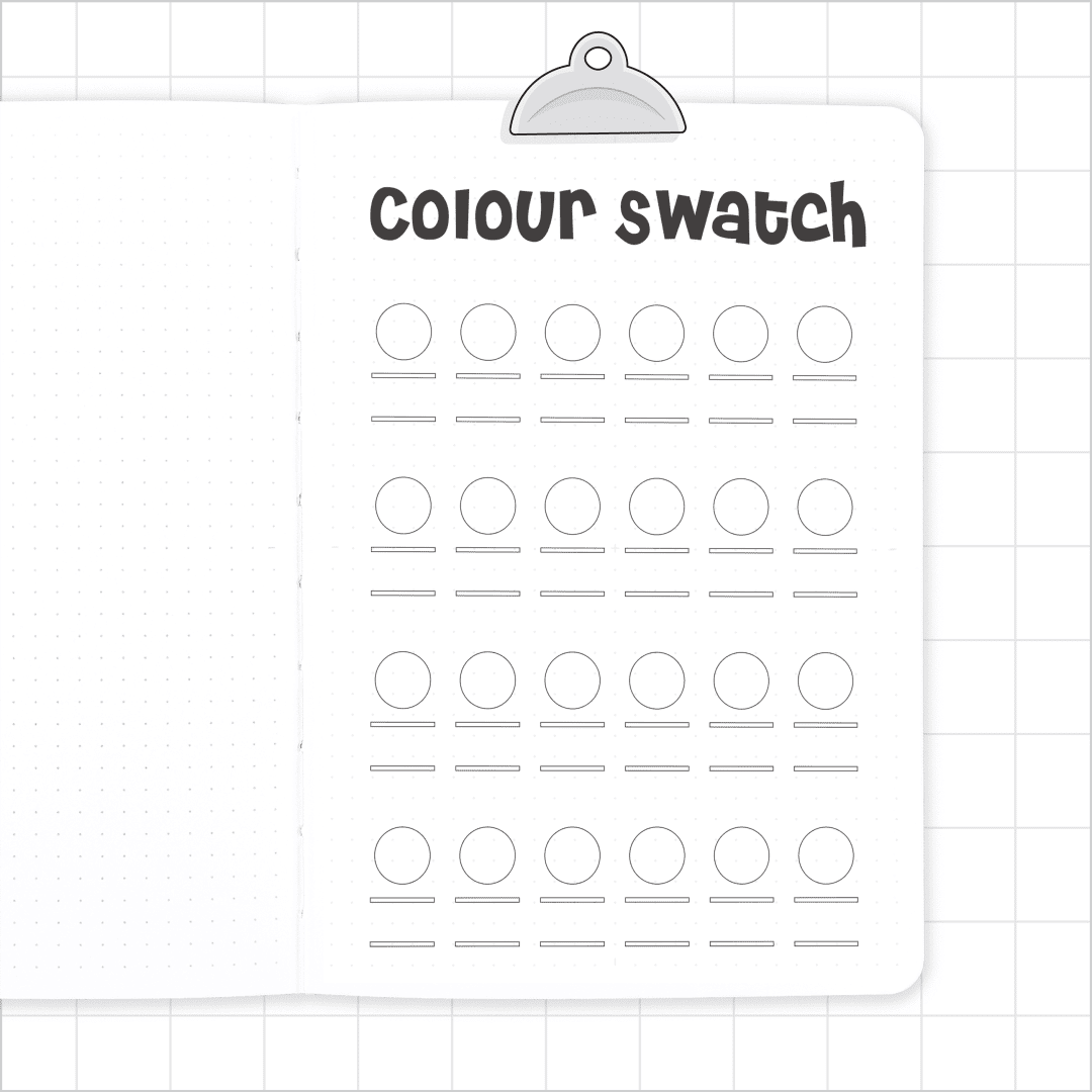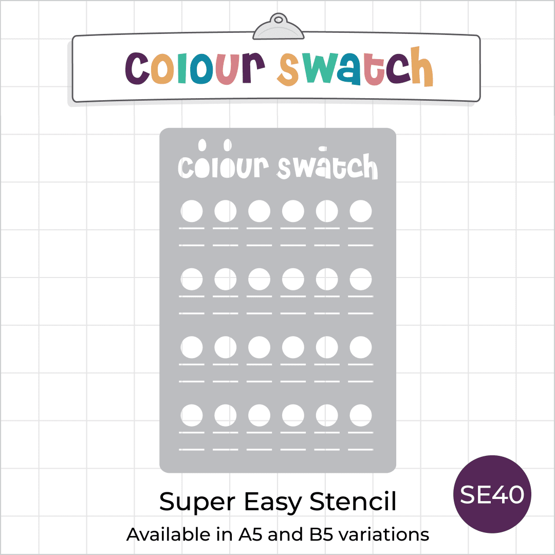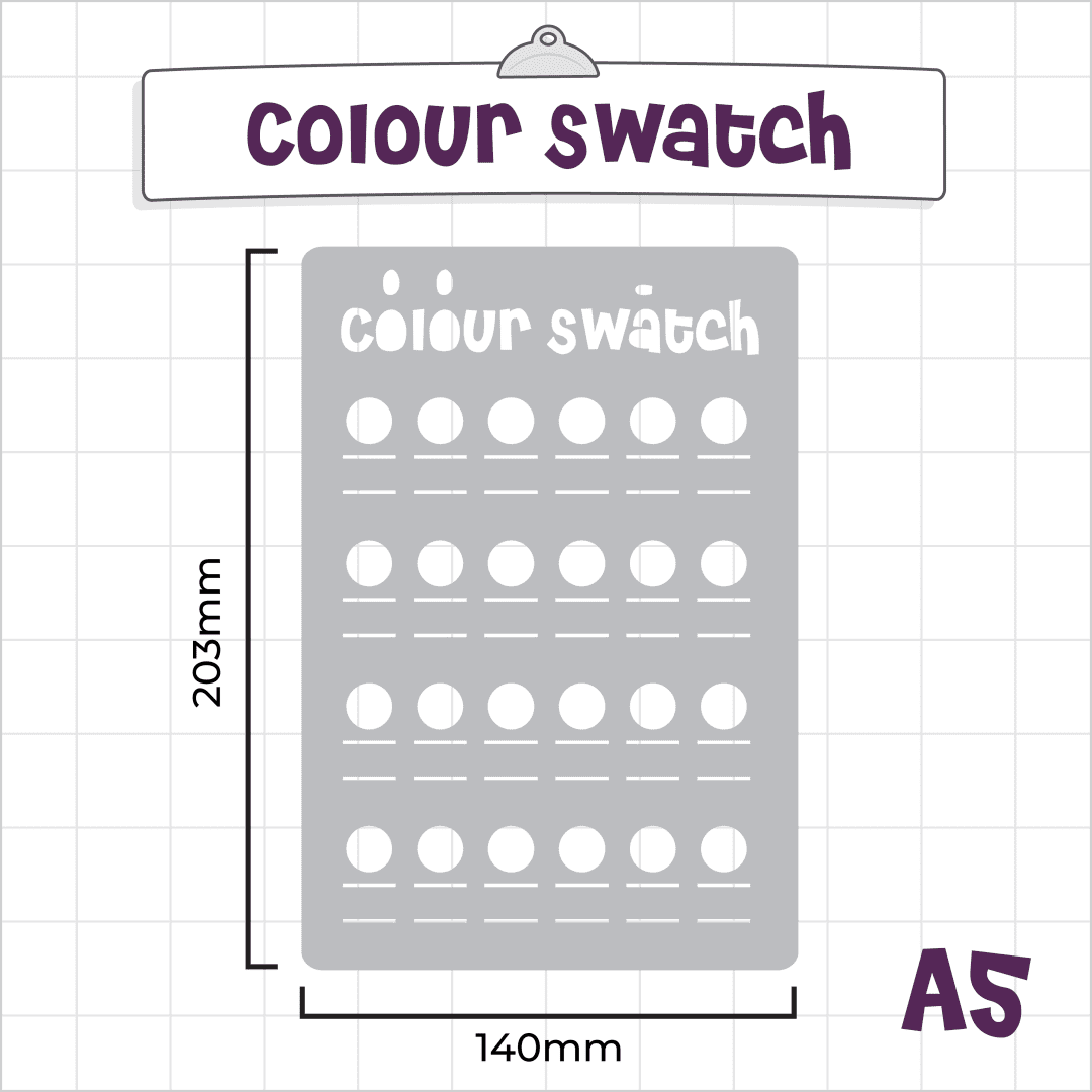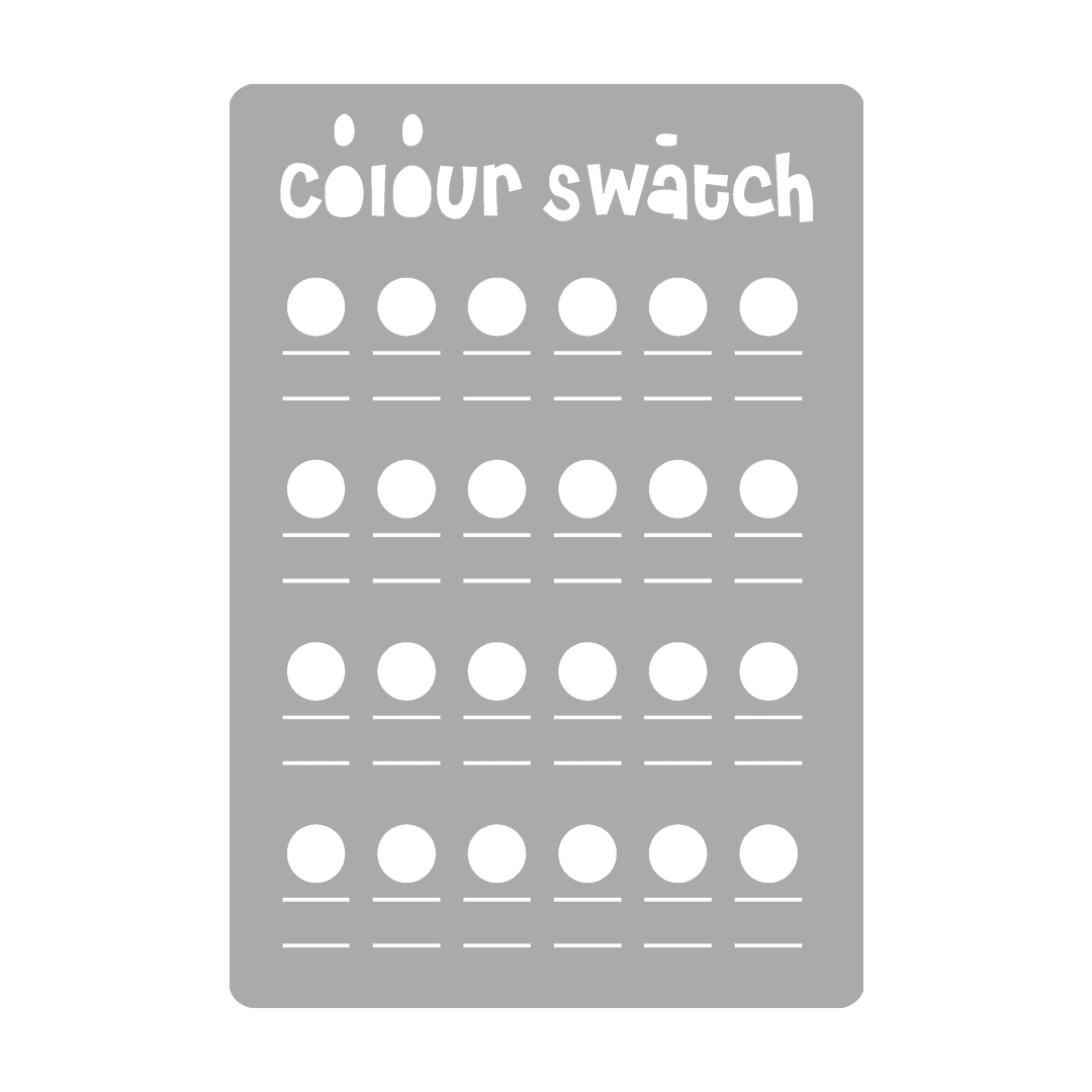 The Colour Swatch stencil is designed to help you swatch a set of pens, pencils or inks in your journal.