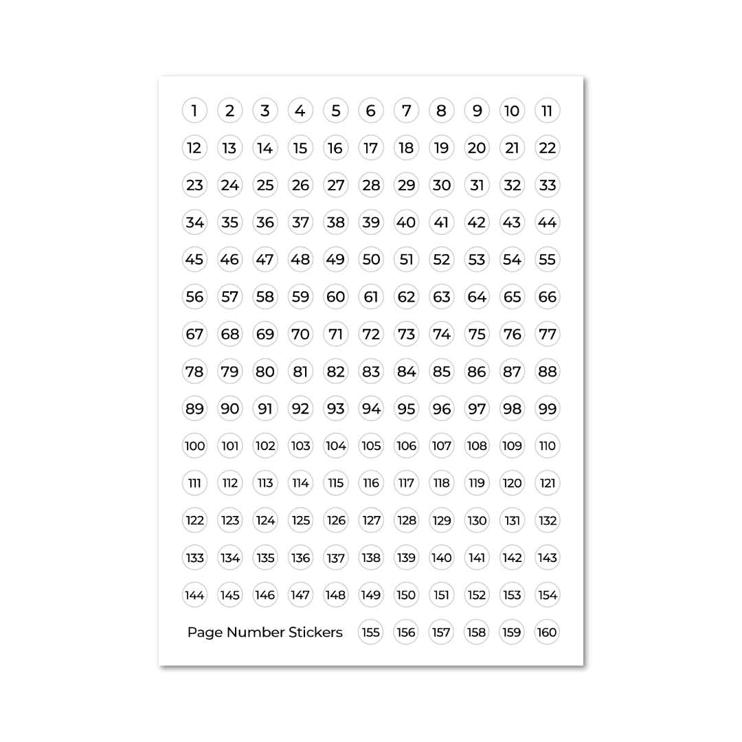 One A6 sticker sheet containing 160 individual number stickers, clearly labelled from 1 to 160, perfect for adding tidy page numbers to your commonplace book, bullet journal, planner, or reading notebook. These small, easy-to-peel stickers make it simple to organise your notes, track collections, and keep long-form journals neatly indexed without having to handwrite every number.
